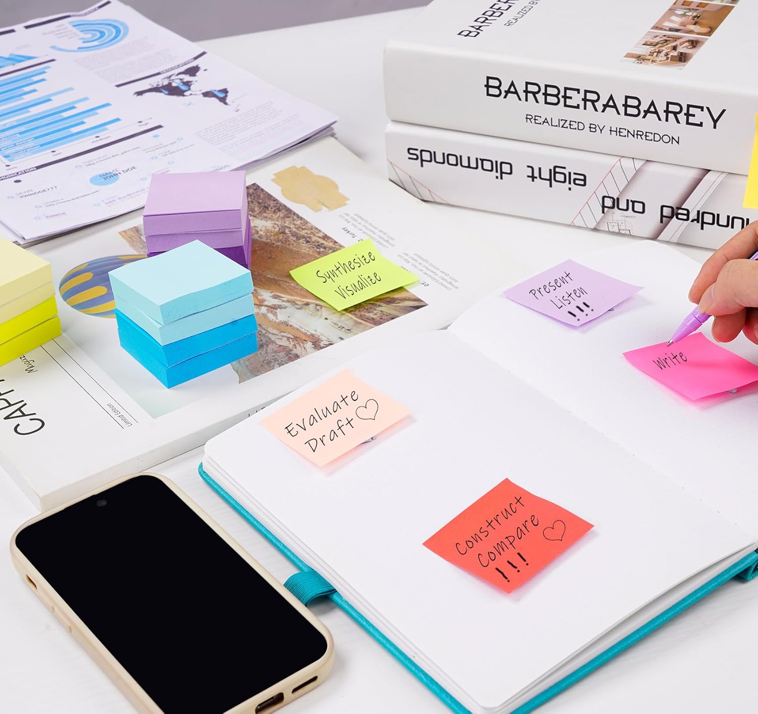 - BRIGHT AND COLORFAST - Sticky notes pads made with 80 GSM thicker paper, flat sticky notes are strong, stay on any surface without curling. Smooth writing, No ink-seepage. Each pad boasts top-notch quality, ensuring your messages stand out with elegance and clarity.