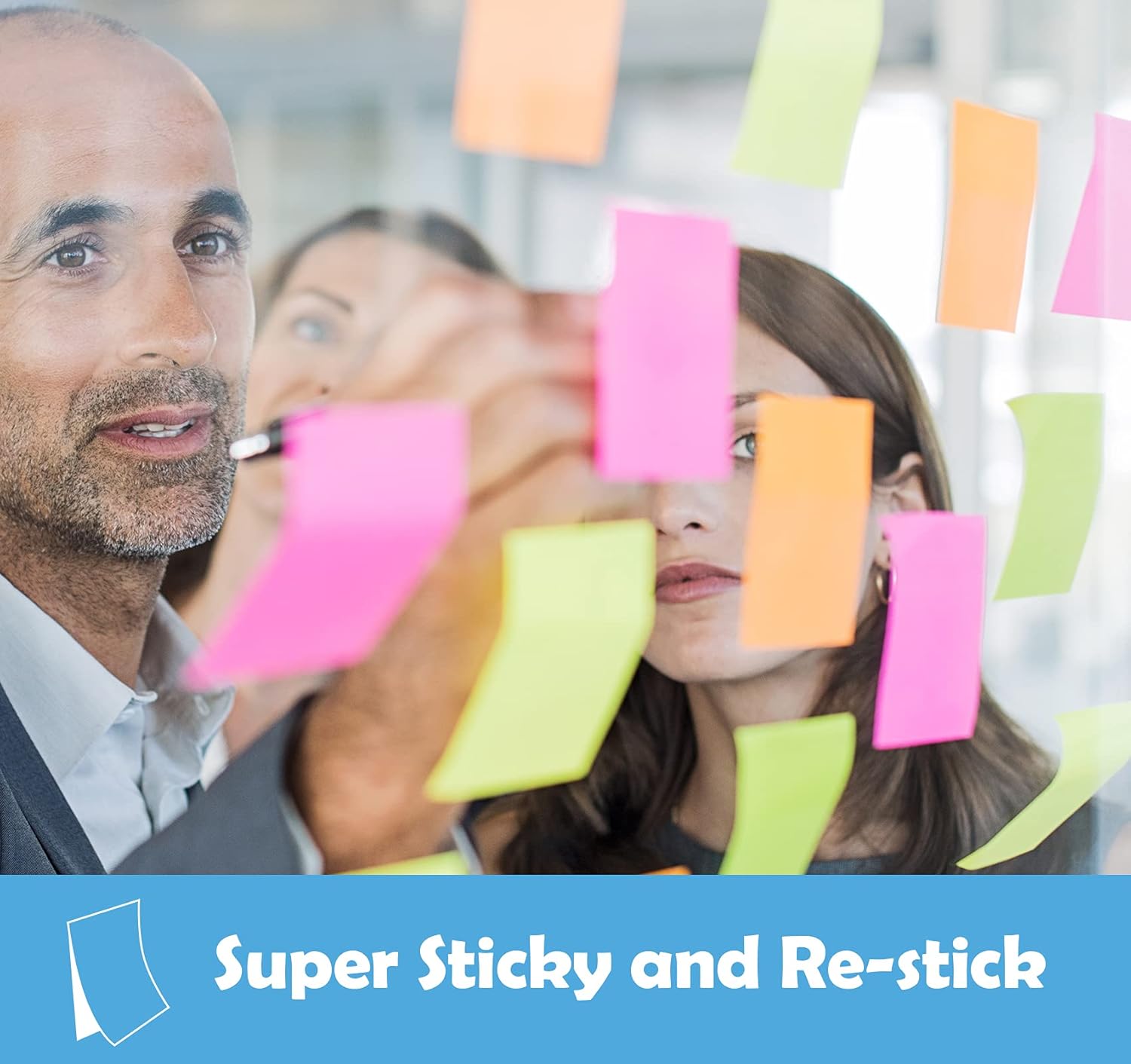 - SUPER STICKY - These sticky notes are super sticky and the adhesive is specially formulated. The super stickiness is twice as strong as normal stickiness, ensuring that sticky notes will not come off and can be removed cleanly.