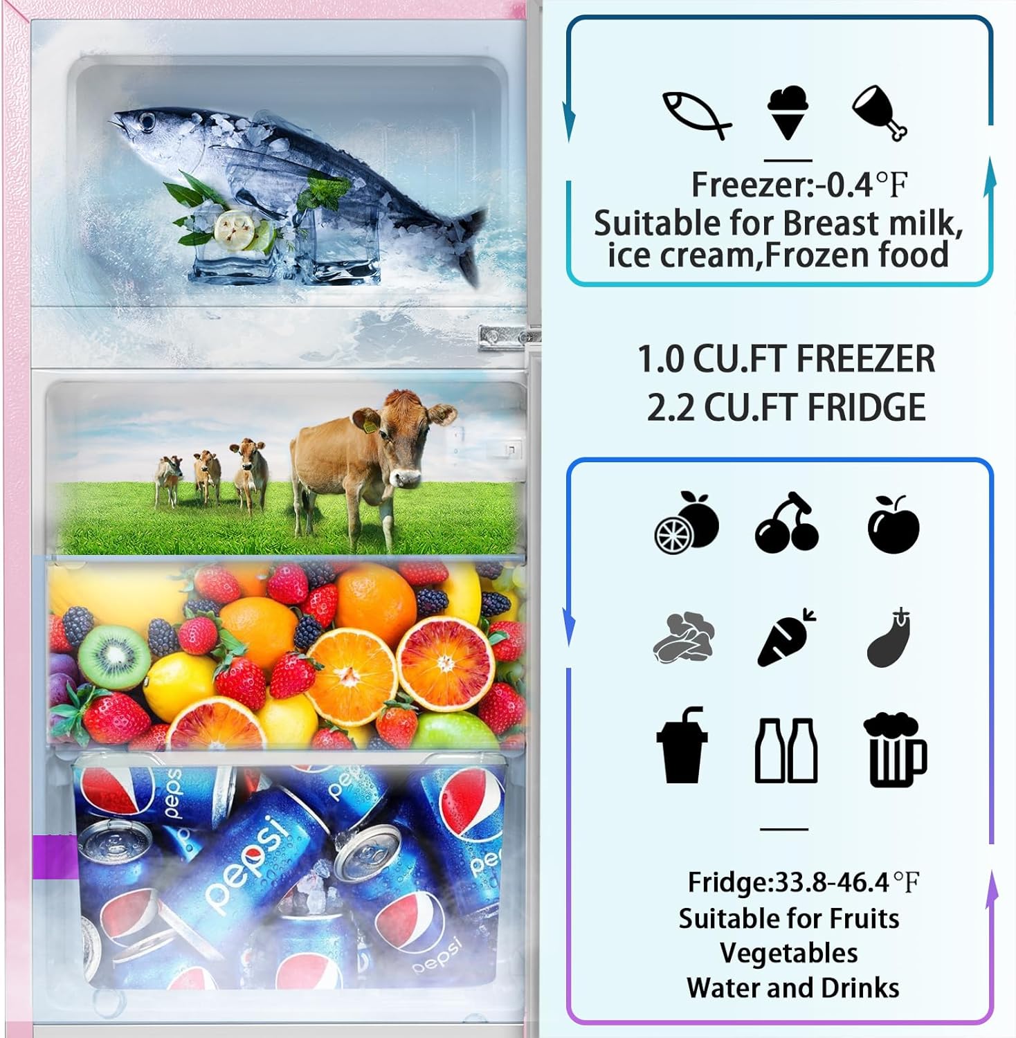 Mini Fridge With Freezer,3.2 Cu.Ft Compact Refrigerator,Mini Refrigerator With 2 Doors For Bedroom,Office,Kitchen,Apartment,Dorm(pink)