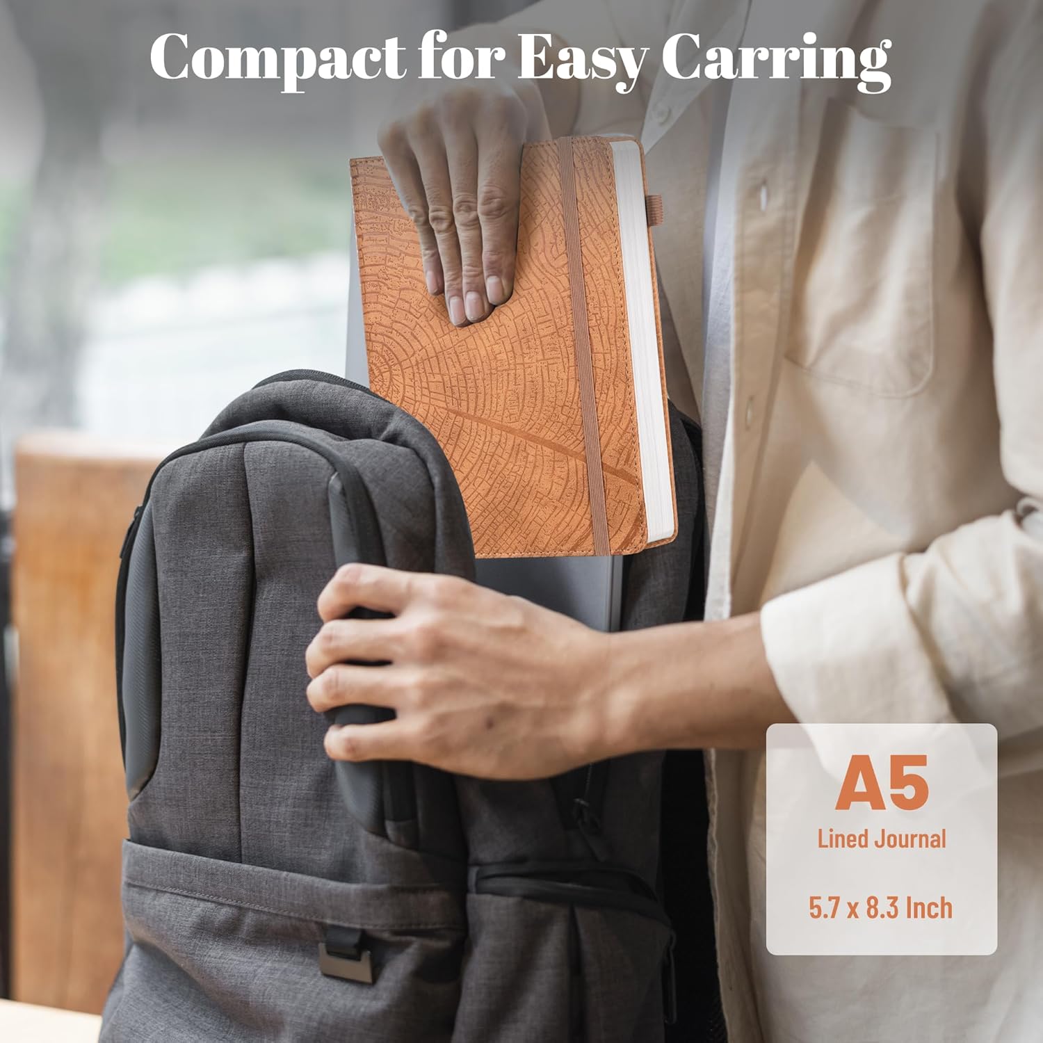 CAGIE Lined Journal for Men Women, Tree Growth Ring Leather Bound Journal Notebook, 256 Pages 100 GSM Journals for Writing, A5 Hardcover Journaling Notebooks for Work, Note Taking