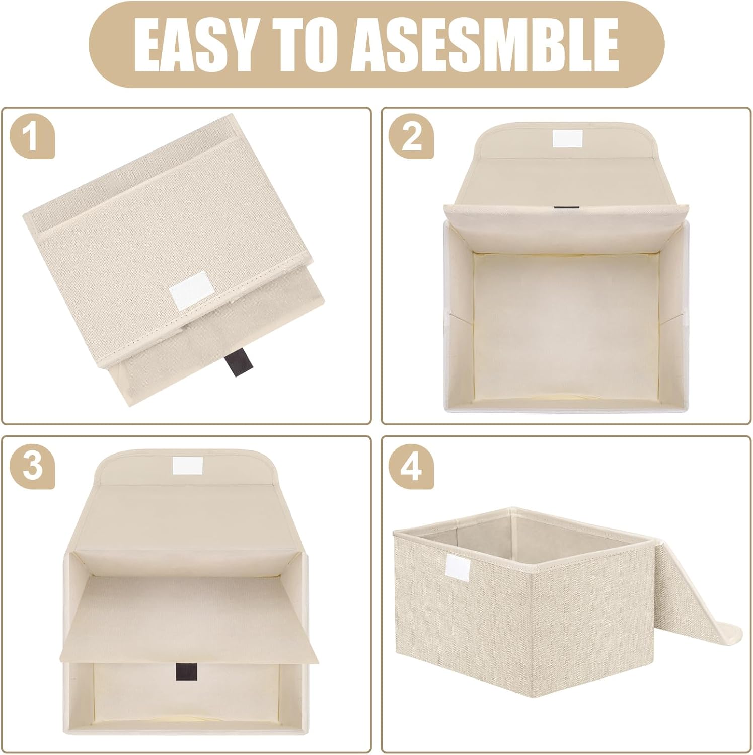 Small 8 Quart Linen Fabric Foldable Storage Bin Cube Organizer Basket with Lid & Handles, Collapsible Decorative Box Container for Home, Dorm, Closet, Beige, 10"x8"x6", 6-Pack