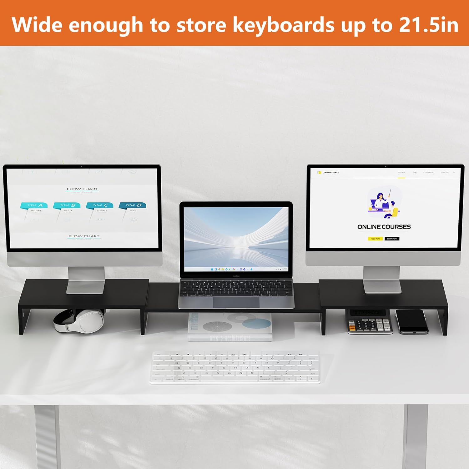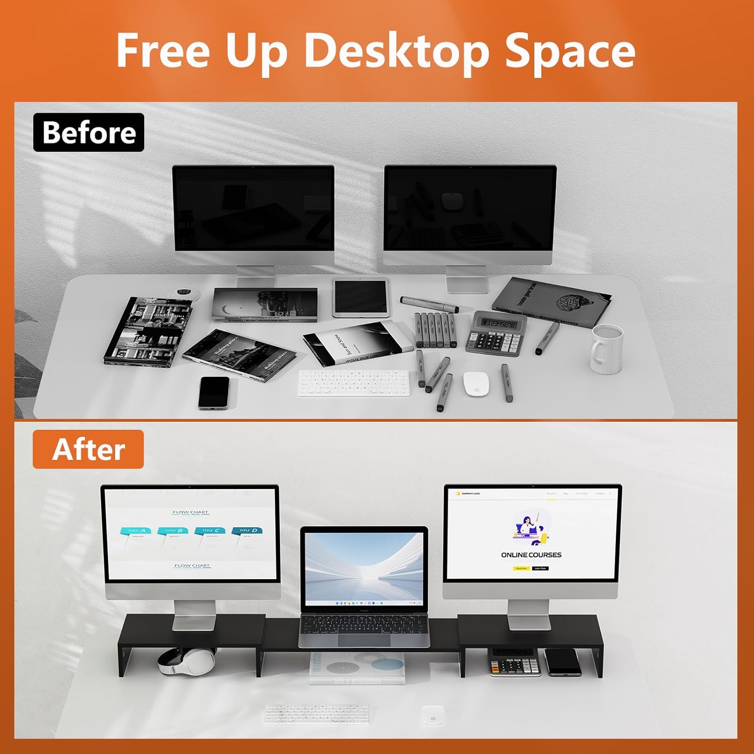 Triple Monitor Stand Riser, Extra Long Monitor Riser for 1~2~3 Monitors, Dual Monitor Stand with Length and Angle Adjustable, 3 Shelf Monitor Stand for Desk
