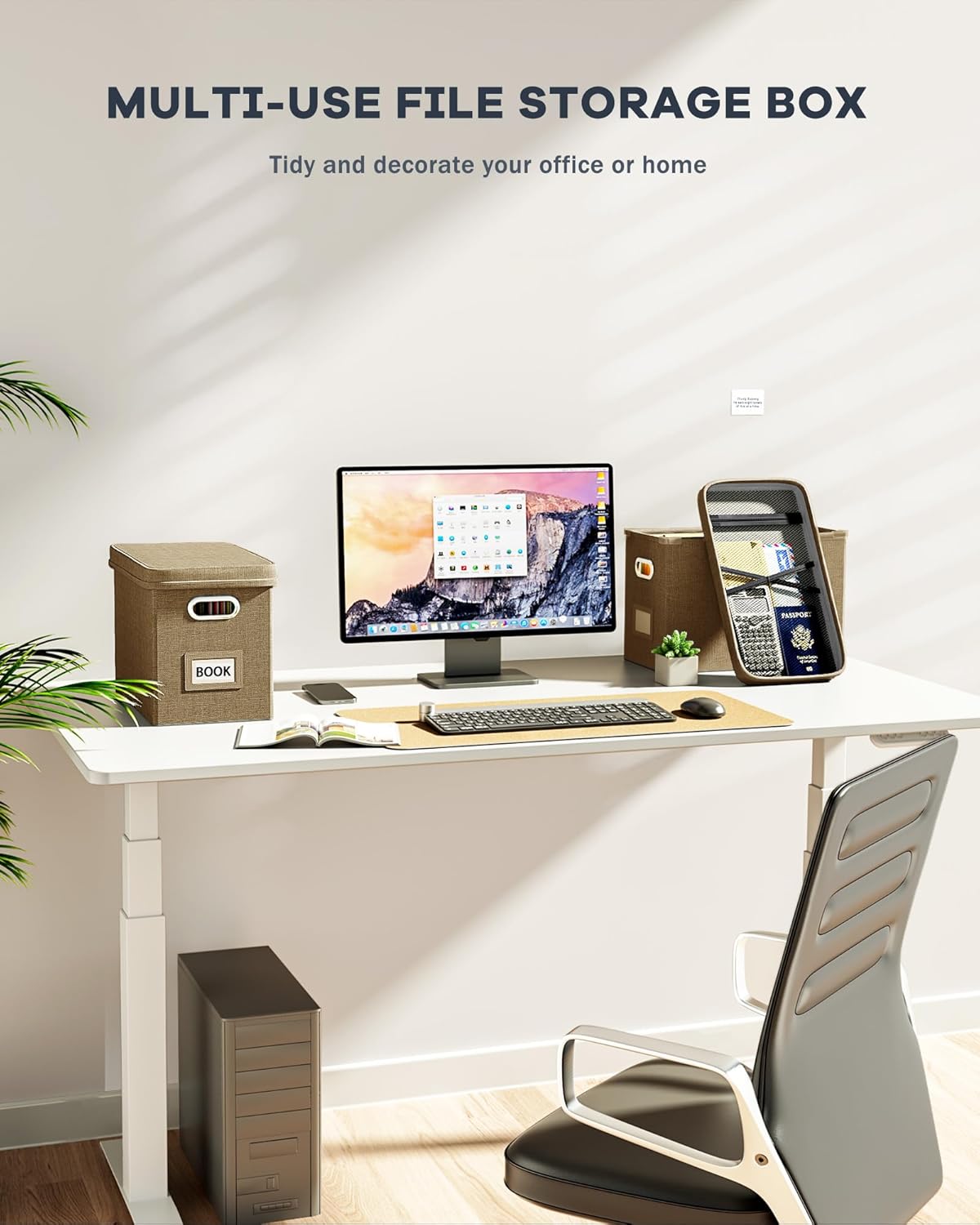 Oterri Hanging Filing File Box with Mesh Pocket, File Organizer Box with Lid, Collapsible Document Organizer Box for Letter Size, Easy Slide Durable Storage Box for Office/Decor/Home (2 PCS, Khaki)