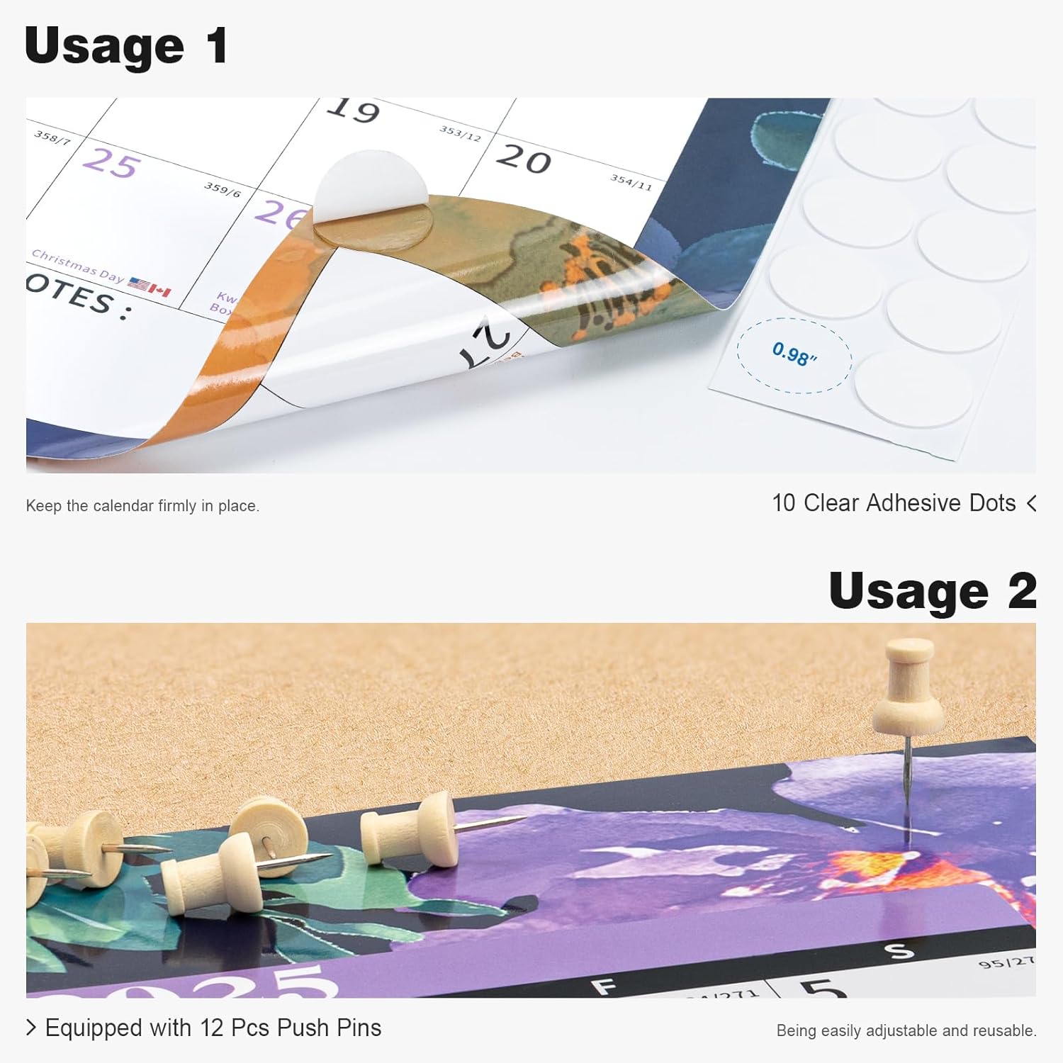 - ⨠Laminated Calendar with Dates: Waterproof wall calendar comes with a mini eraser, four dry-erase markers, 12 push pins, and 10 transparent round stickers. 2 yearly calendar planner covers the time range from July 2024 to June 2026, making it perfect for long-term use.