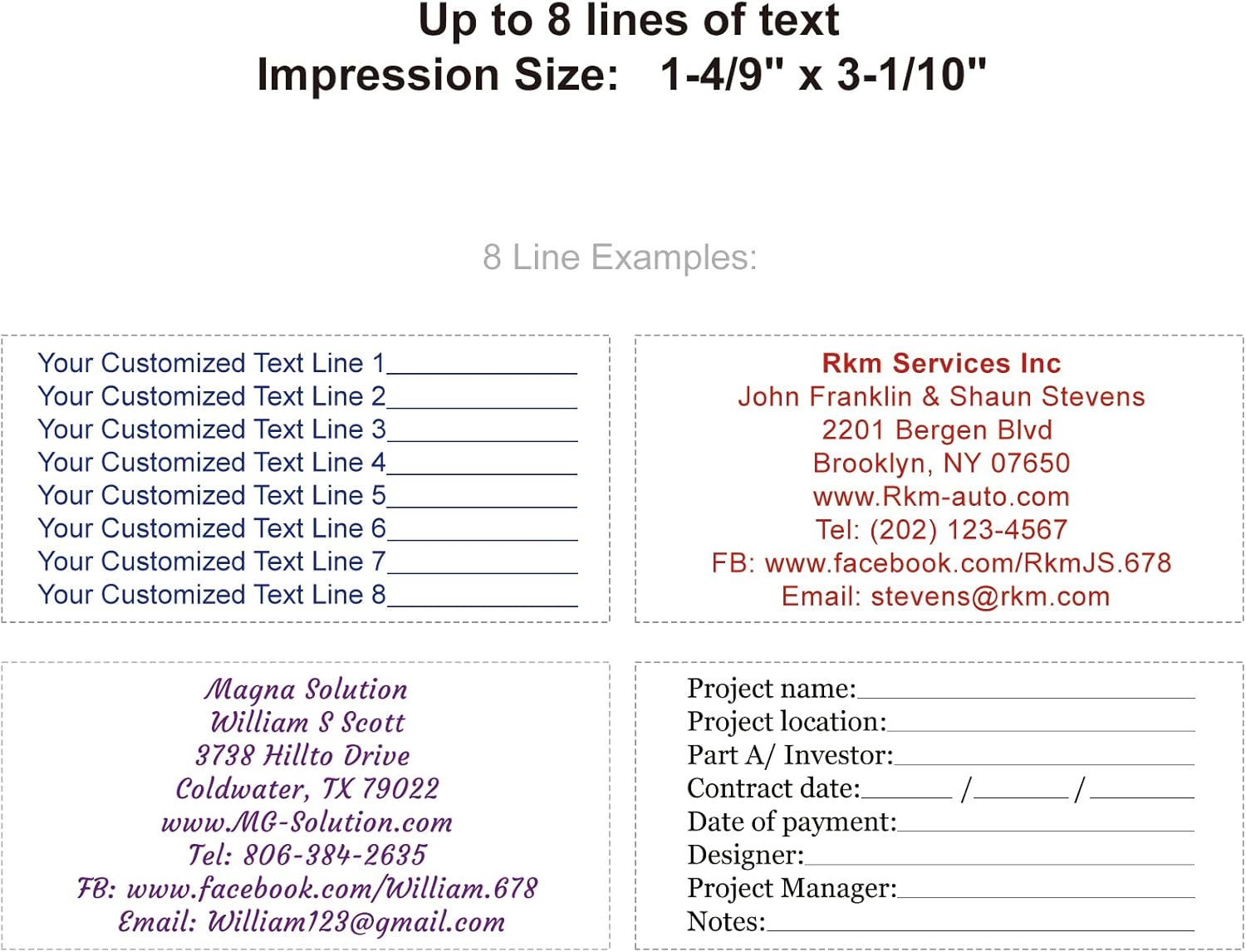 - Up to 8 lines of text, you can choose any line bold, whether it is contact details, email, website, convenient phrases, or underline and other special symbols, can be accurately copied on the stamp to meet your various needs