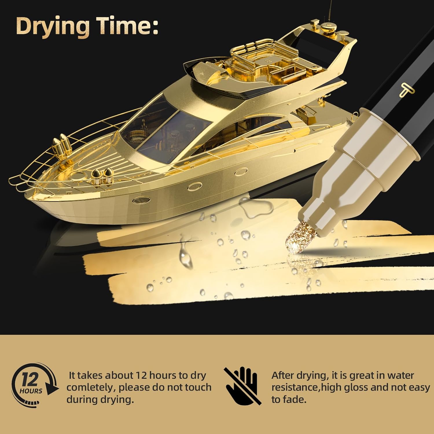 - Versatile Application: These permanent gold marker pens is best used on smooth and non-absorbent surfaces such as metal, glass, rock, ceramic, plastic, gypsum, clay, jewelry, leather and more, the paintβs metallic finish adds brilliance to your creations, making it perfect for a variety of DIY projects. Perfect for detailing trim or coloring model cars, and add character to daily creations like illustrations, custom paintings, signature.