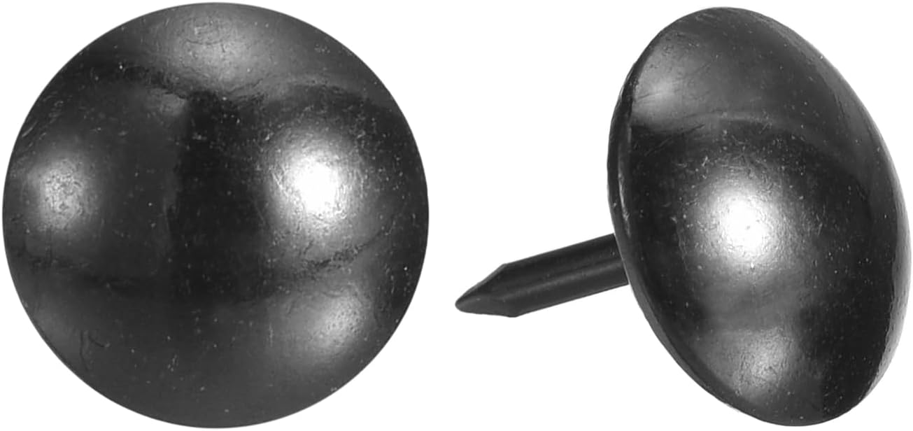 - Specifications: Material: Carbon steel; Color: Black; Diameter of nails head: 11mm/0.44inch; Shank length: 13mm/0.512inch; Package Content: 150Pcs x Upholstery Tacks Nail Pins