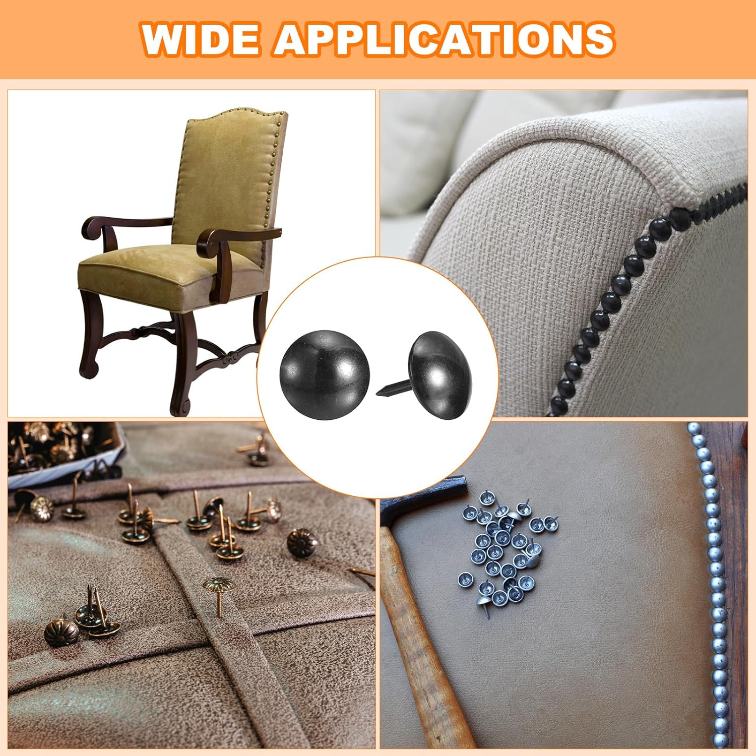 - Feature: These metal thumb tacks are for decorating furniture, such as sofas, headboards, and wooden furniture, as well as for crafting jewelry boxes and other DIY projects. They can also be used to securely attach paper items or photos to cork boards without causing damage.