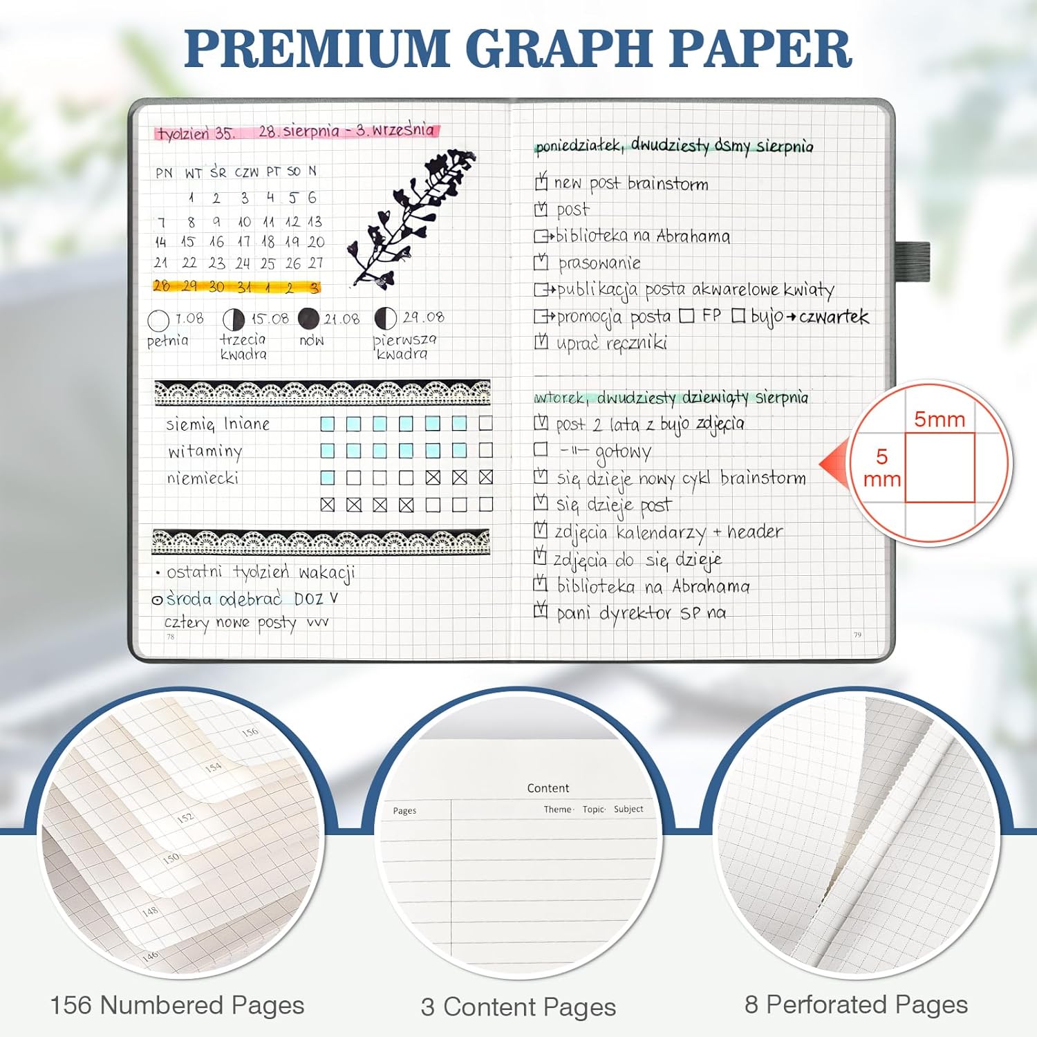 - 【Wide Application】The notebook square grid is versatile and ideal for a wide range of users. Whether you're a student, teacher, designer or engineer, this a5 grid notebook is your perfect companion for note taking, engineering drawings, planning, personal creations, and travel journaling. Individual packaging also makes a wonderful gift to share with friends, family, and classmates.