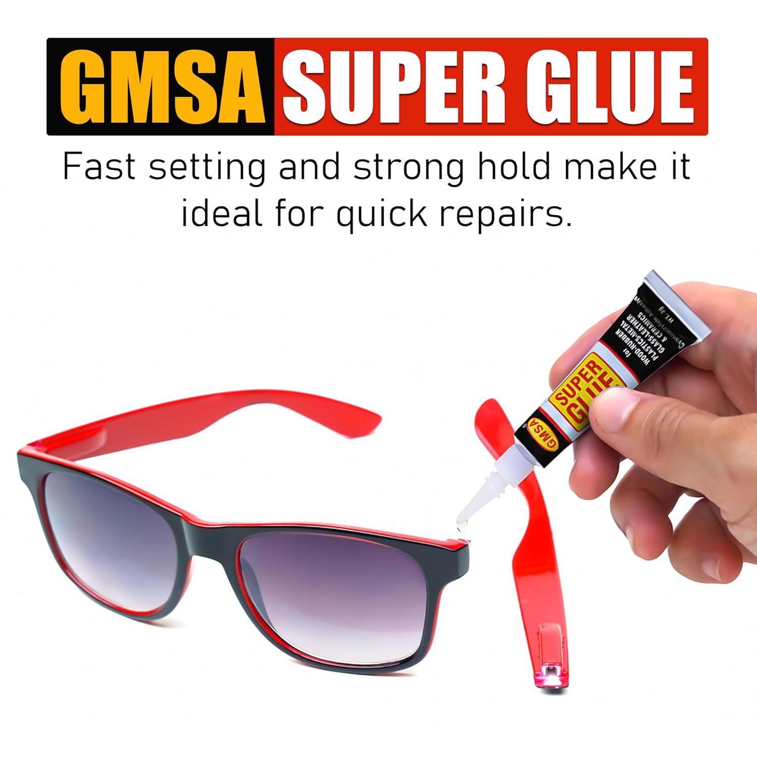 - Super Glue all purpose: GMSA super-strong instant glue adhesive works wonders on a variety of materials, making it perfect for ceramic repairs in Wood, pottery, jewellery, plastic, rubber, paper, leather, metal, shoes and much more, ensuring lasting results.