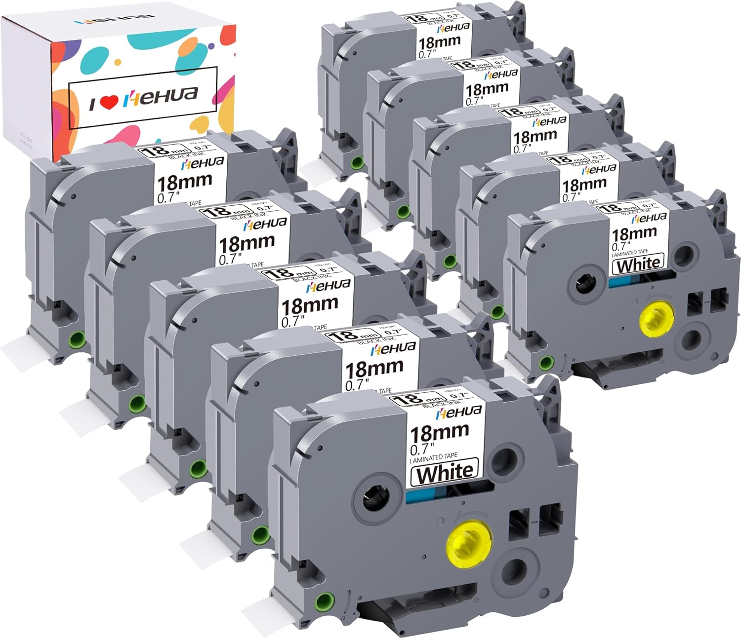 Hehua Tze Tz Tape 18mm 0.7 Laminated Tape Compatible for Brother TZe-241 TZe241 TZ241 TZ-241 Label Maker Tape 18mm 0.7 White for Ptouch PT-D400 PT-D600 PTD600vp, 3/4 inch Black on White, 10 Pack