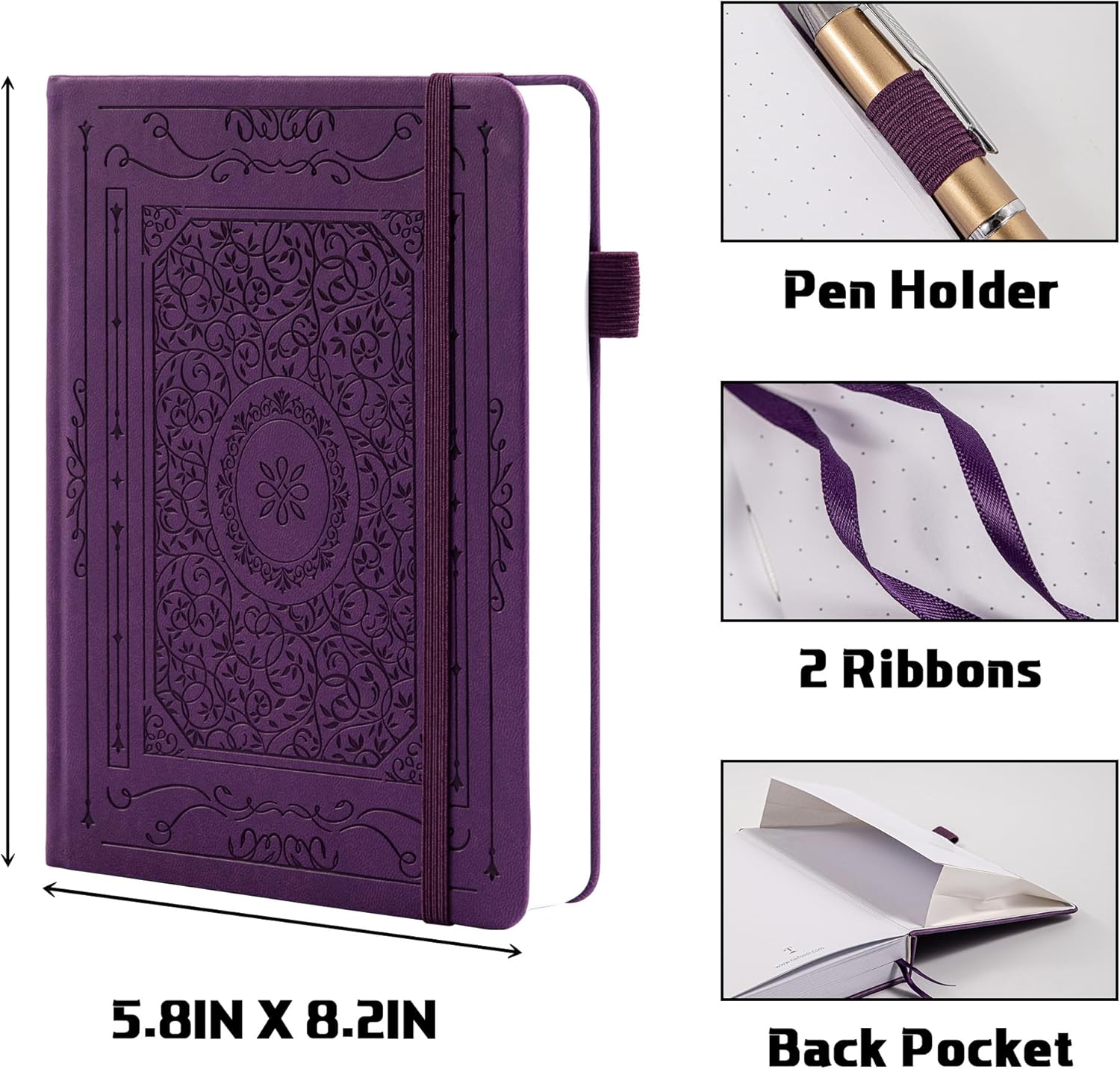 - Unique Cover Designs: This dot matrix notebook features a premium faux leather cover. The elegant embossed and foil-stamped cover pattern delivers a beautiful look and comfortable feel, available in 5 classic colors. The rounded edges and hard leather cover all protect the journal better, and with the sturdy binding, it brings you a high-quality writing experience.