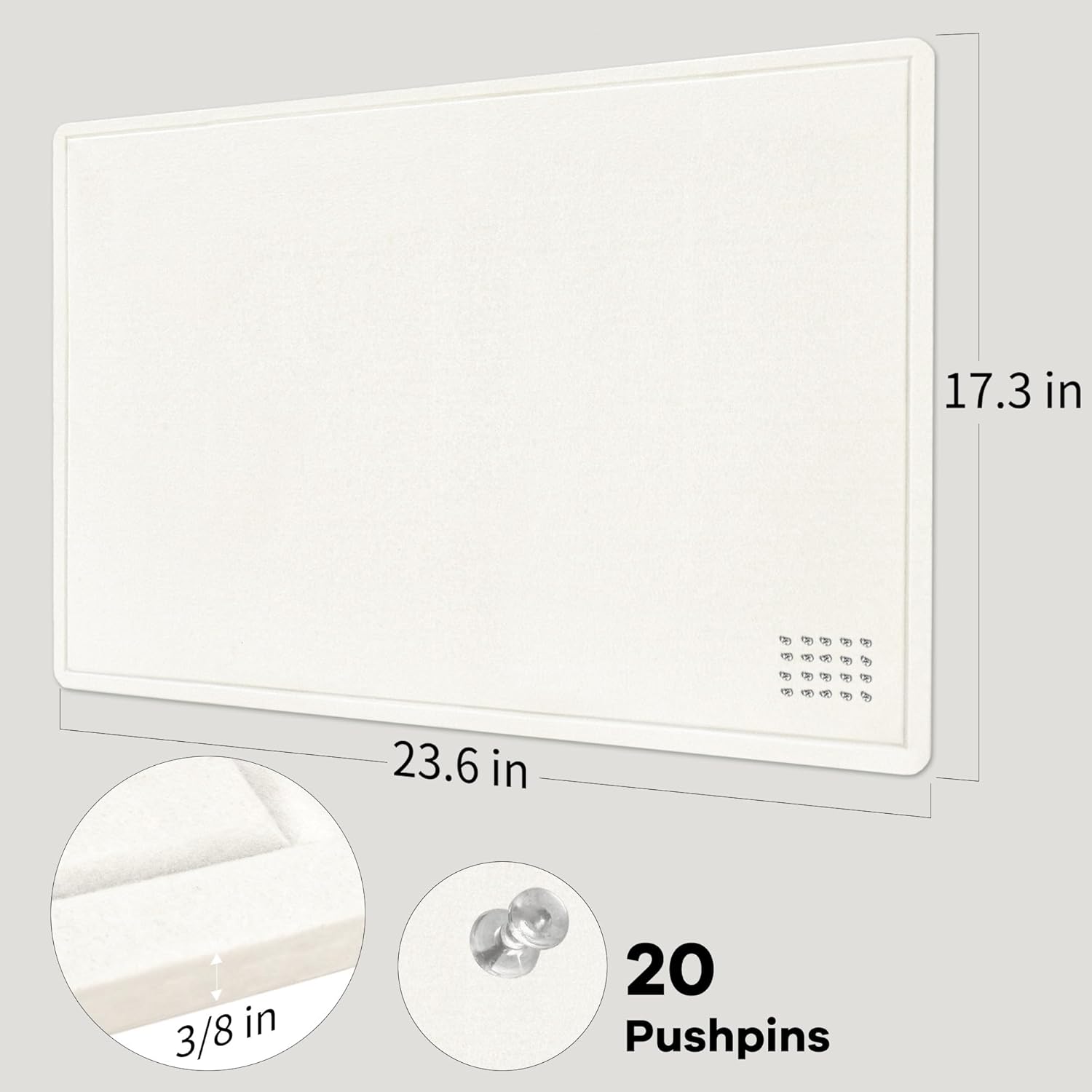 Bulletin Board, 24 x 18 inches Felt Board Decorative Pin Board, Cork Board Alternative for Wall, Foldable Photo Board Self-Adhesive Vision Board Mood Board with 20 Pushpins - White