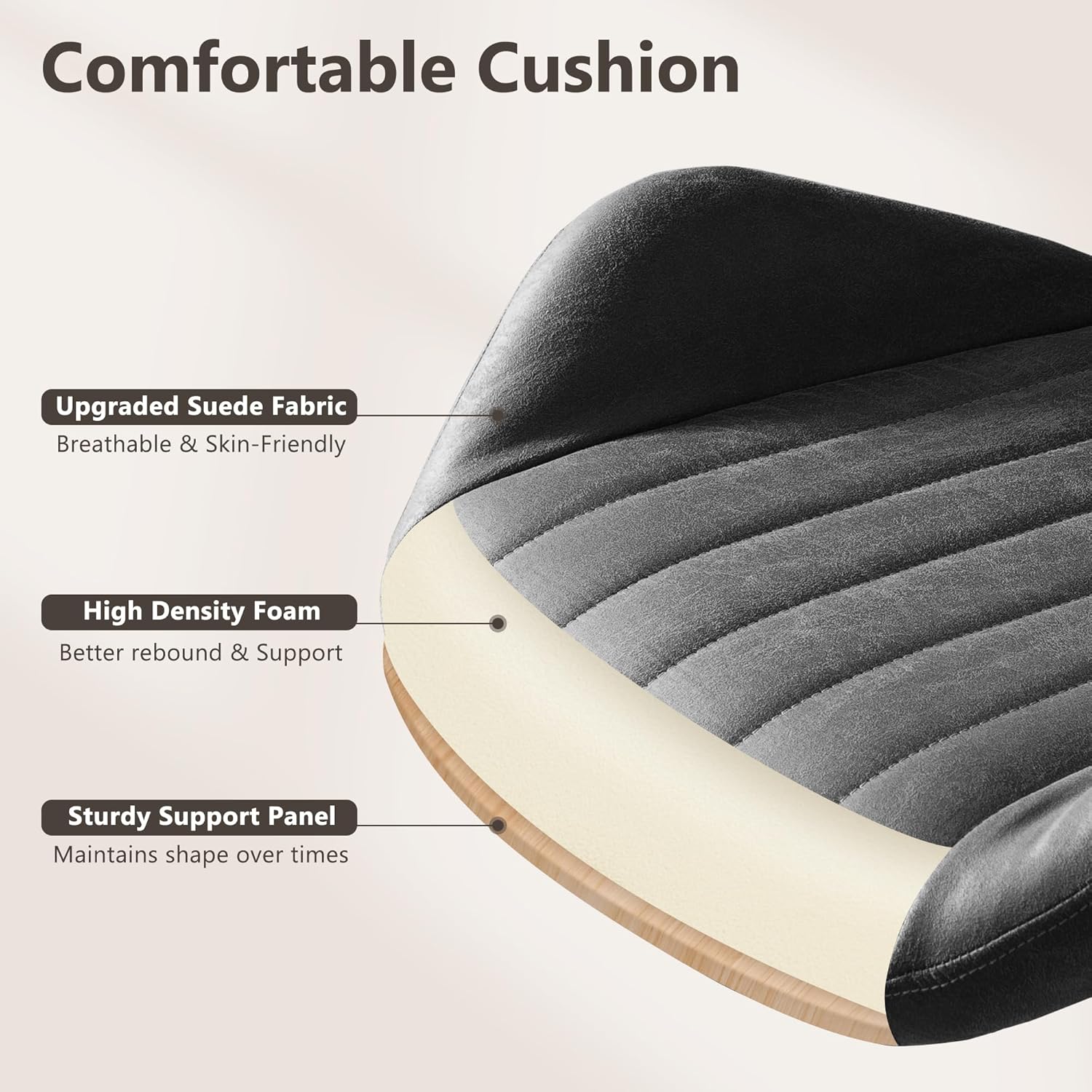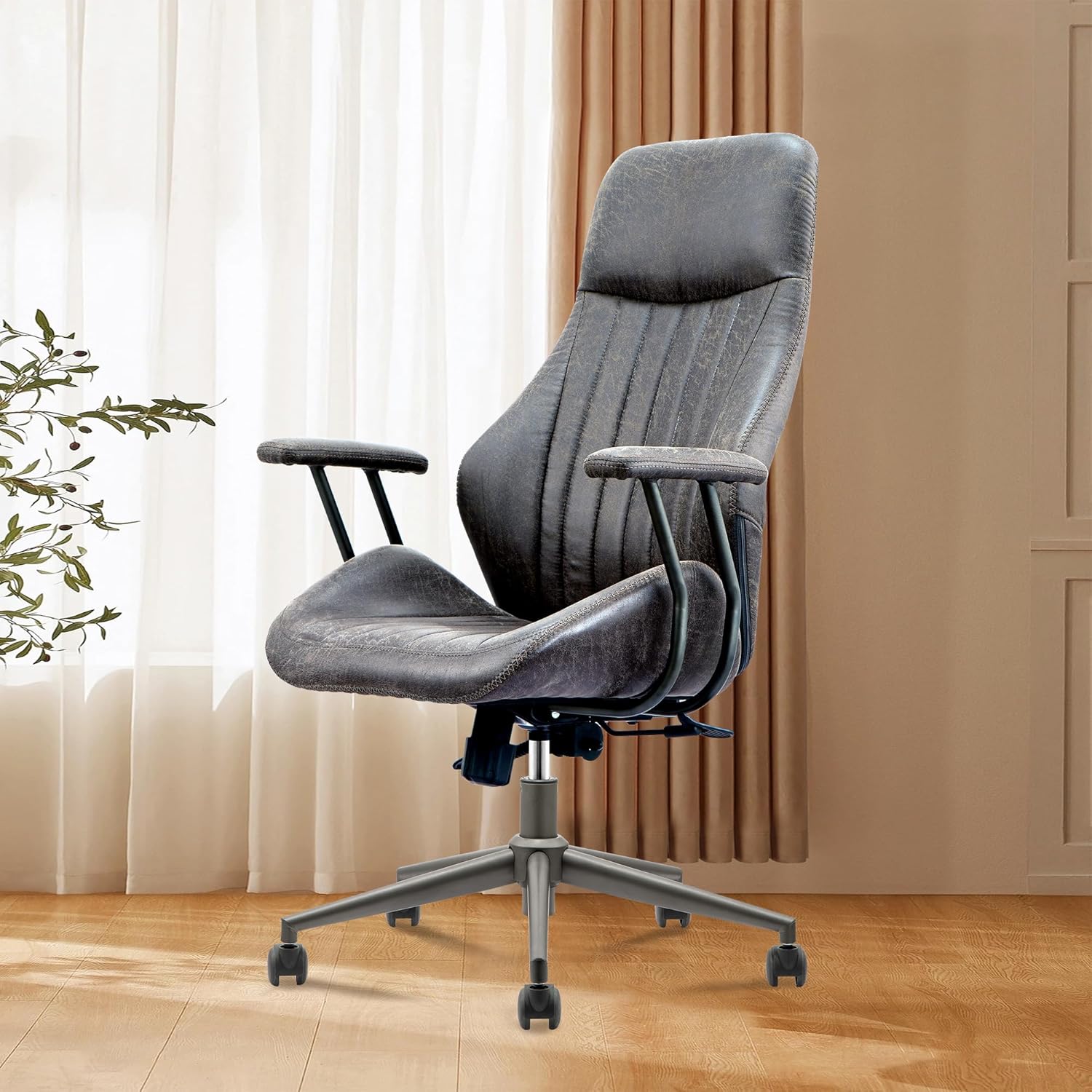 - Faux Leather Suede Fabric: Elevate your office experience with our chair's sumptuous faux suede fabric, offering an exquisite tactile experience combined with exceptional durability. Its warmth and resilience make it both easy to clean and resistant to stains, cracks, and scratches. The plush cushion, filled with high-density foam, provides unparalleled support for all-day comfort. Transform your home office with this sophisticated and functional desk chair