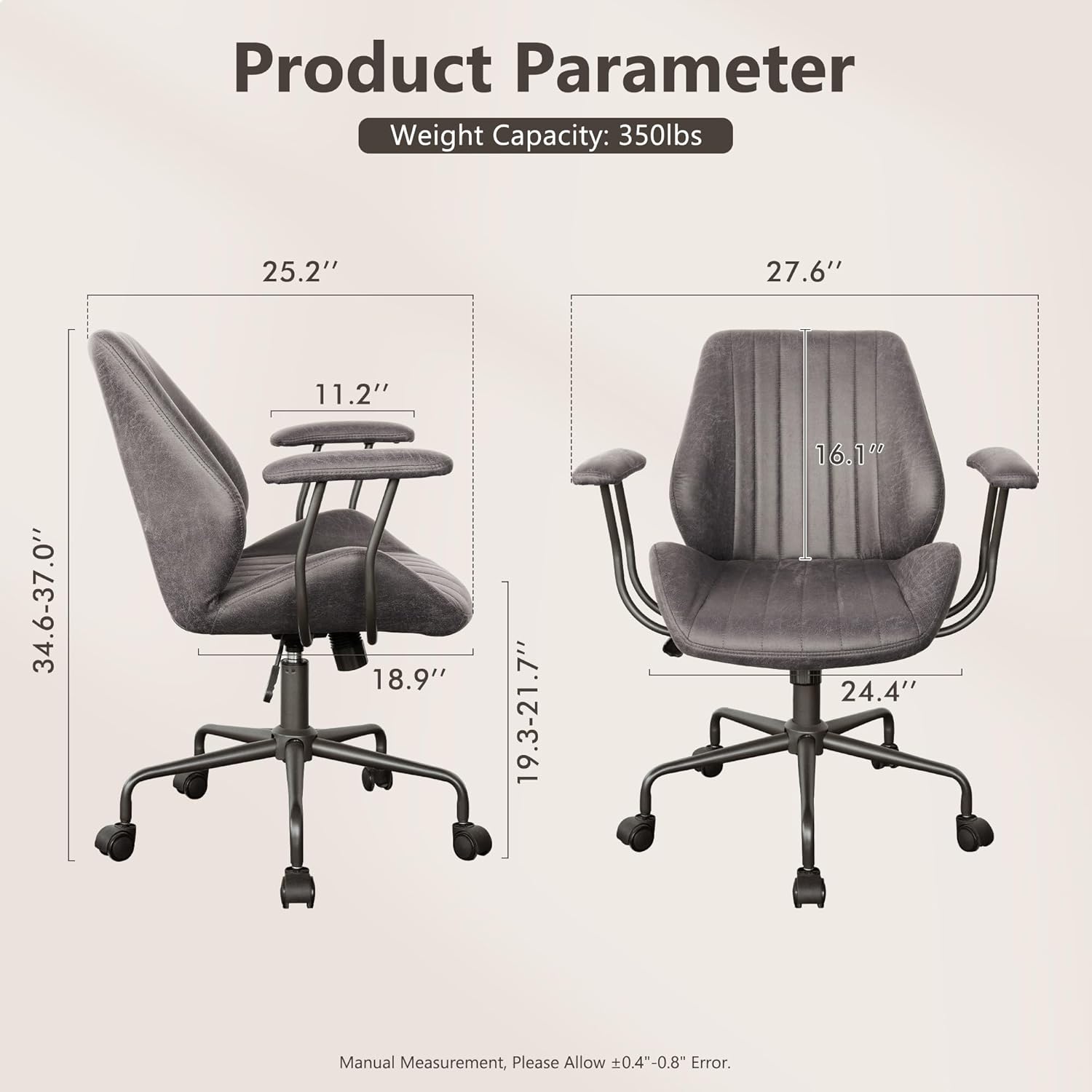 Mid Century Modren Office Chair - Mid Back Swivel Executive Chair with Lumbar Support,Ergonomic Computer Desk Chair with Wheels,Faux Lether Suede Task Chair,350lbs (Grey, Mid Back)