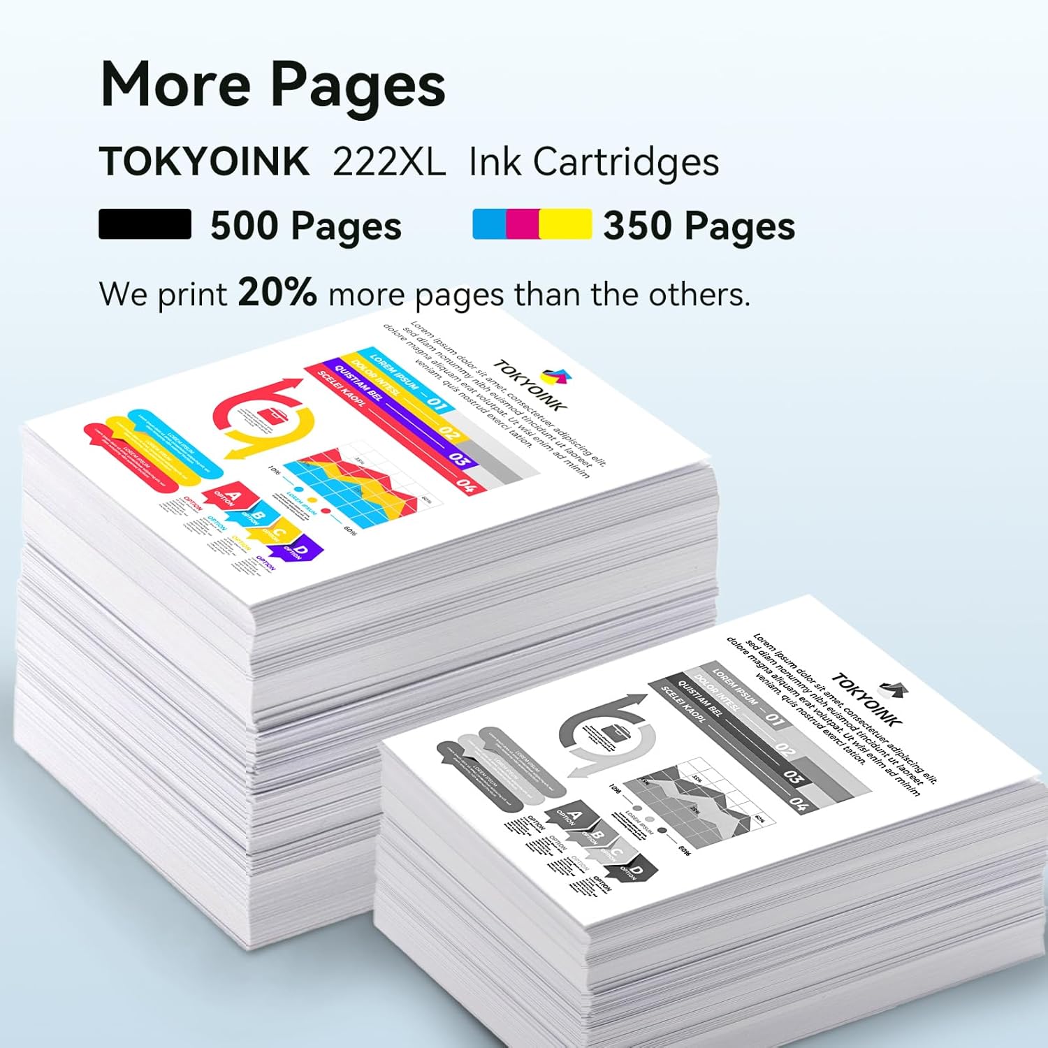 - Excellent Printouts:222 xl ink cartridges made of preminum ink, undergoing strict inspection and certification, bring sharp text and vivid image printing for your all needs.
