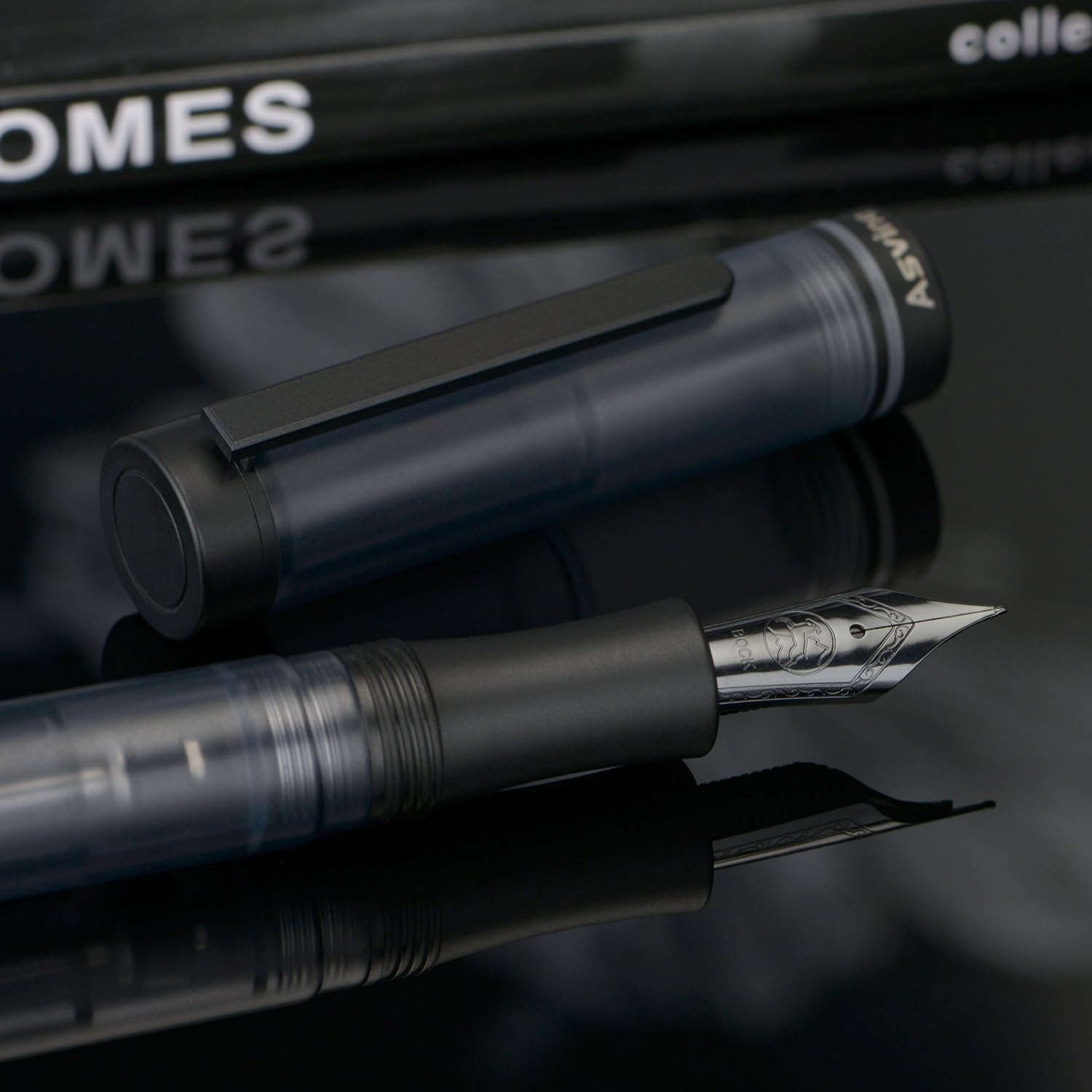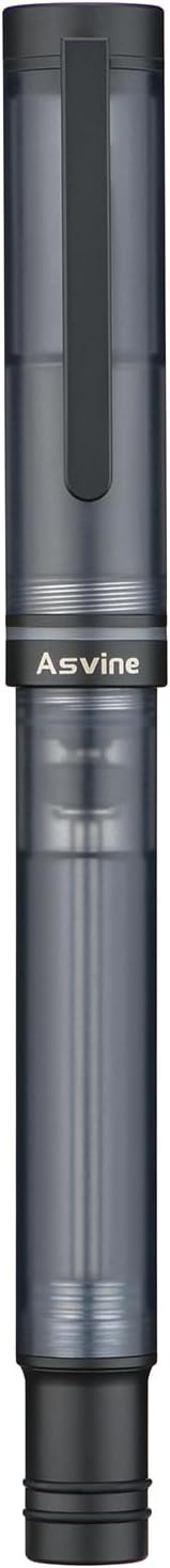 Asvine V200 Titanium Fountain Pen Vacuum Filling, Matte Black Bock Medium Nib Transparent Acrylic Smooth Writing Pen Case Set