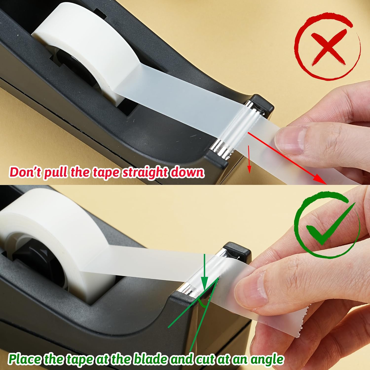 - Tape surface: Matte finish, semi-transparent, does not completely cover documents or pictures. Writable surface, easy to mark and label on the tape. Suitable for packaging, labeling, and crafting.