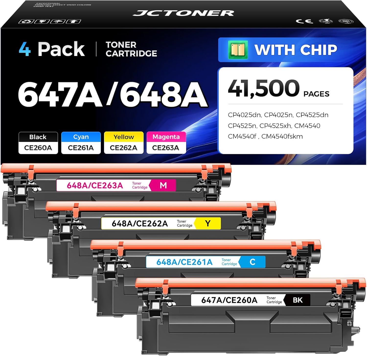 647A 648A Toner Cartridge 4-Pack Replacement for HP 647A 648A CE260A CE261A CE262A CE263A for Color LaserJet Enterprise CP4025dn CP4025n CP4525dn CP4525n CP4525xh CM4540 MFP CM4540f CM4540fskm Printer