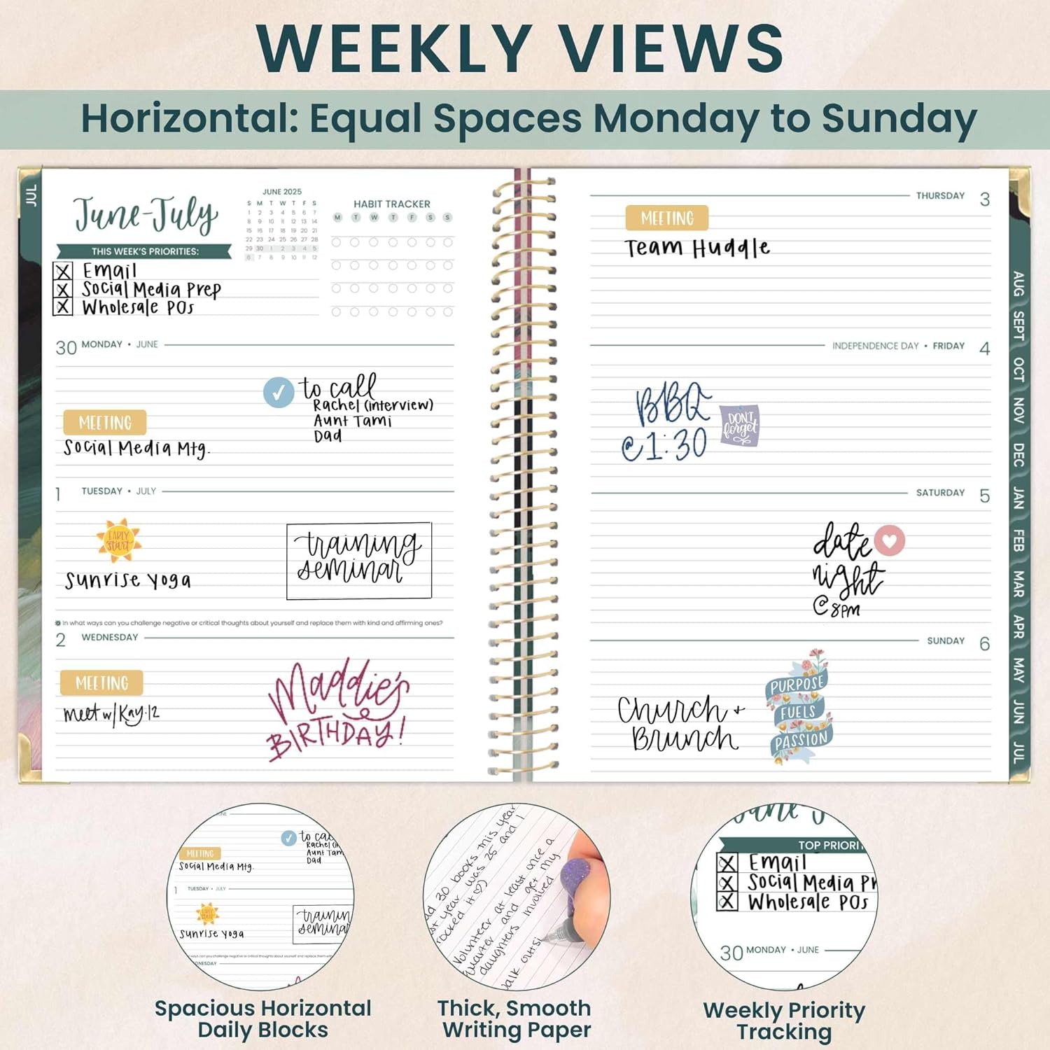 - LARGE 8.5” x 11” HARDCOVER PLANNER FOR WEEKLY & MONTHLY PLANNING: This 2025-2026 academic planner (July 2025 - July 2026) features spacious monthly overviews and horizontal weekly spreads. Weekly pages include priorities & habit tracking.