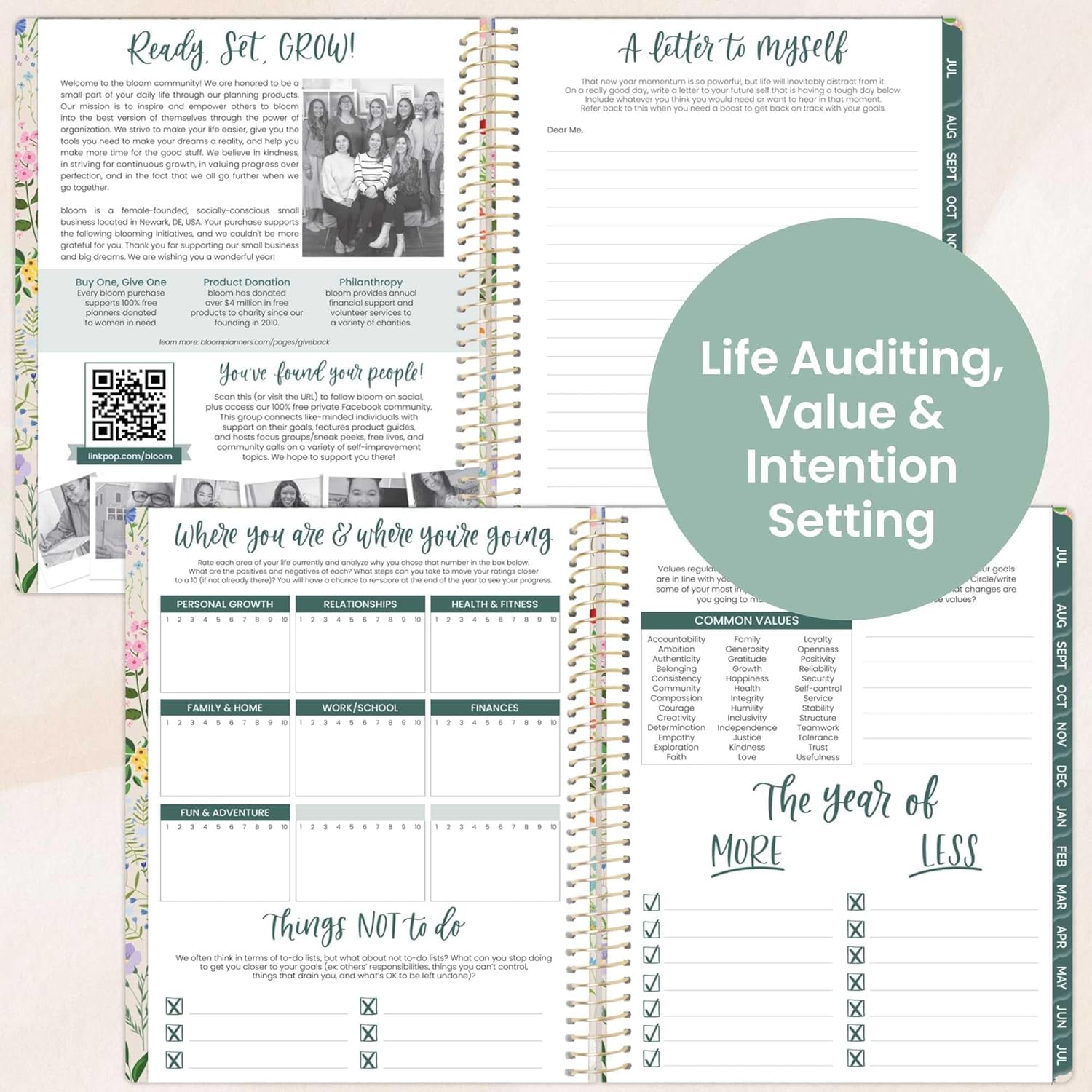 - THOUGHTFUL PRODUCTIVITY TOOLS: This goal-setting planner is packed with features to keep you focused and motivated like a personal mission statement prompt, yearly goal-setting worksheet, vision board, budget log, scheduling templates, 13 note pages, motivational quotes, and monthly challenges.