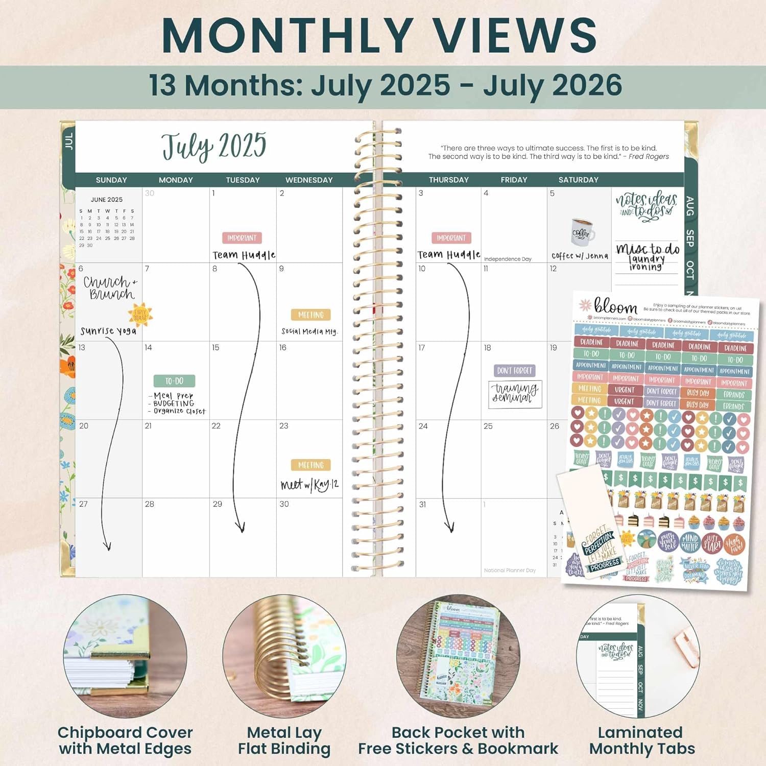 - 5.5” x 8.25" PLANNER WITH MONTHLY & WEEKLY PLANNING: This academic planner runs from July 2025 to July 2026 and features spacious monthly overviews and horizontal weekly spreads. Perfectly sized to throw in a purse or bag!