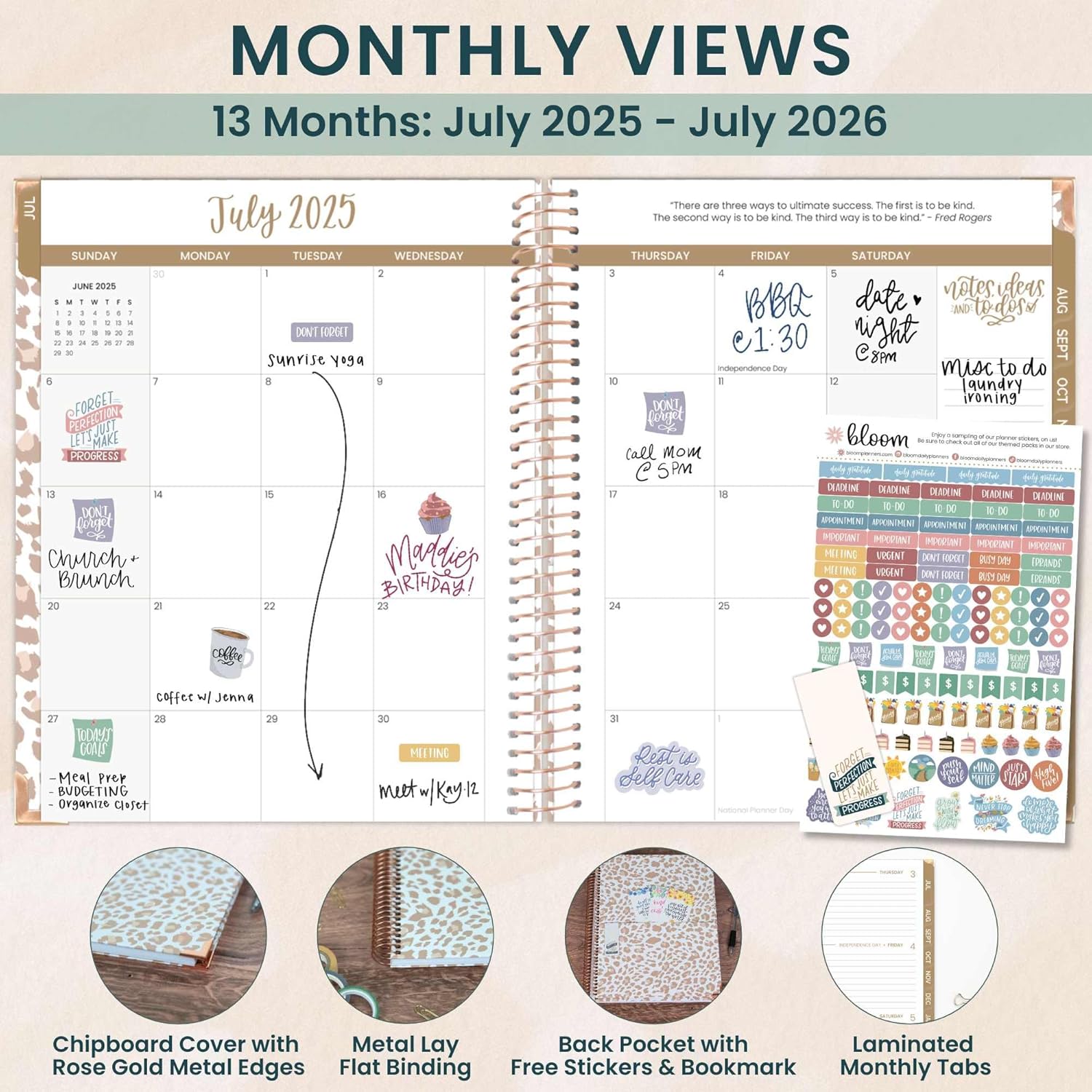 - 8.5” x 11” WITH HORIZONTAL WEEKLY LAYOUT & MONTHLY VIEWS: 2 page monthly overview spreads and spacious weekly views run Academic Year, July 2025 through July 2026. Weekly views are horizontal and include priority & habit tracking.