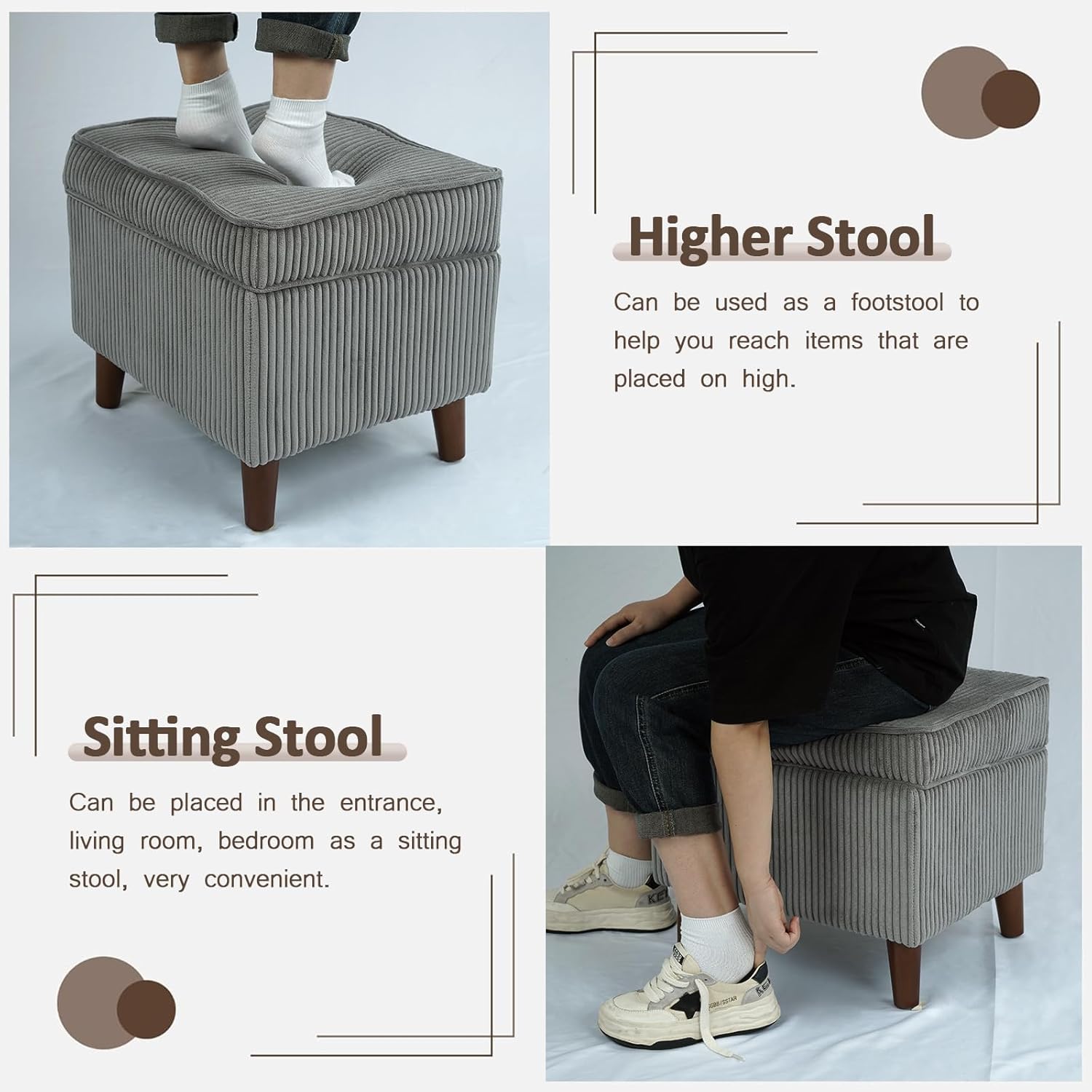 - ăSoft Corduroy Fabrică Experience ultimate comfort with footstoolâs soft corduroy fabric. Known for its durability and resistance to wear and tear, corduroy's plush texture provides exceptional comfort, making it a stylish and cozy addition to any room.