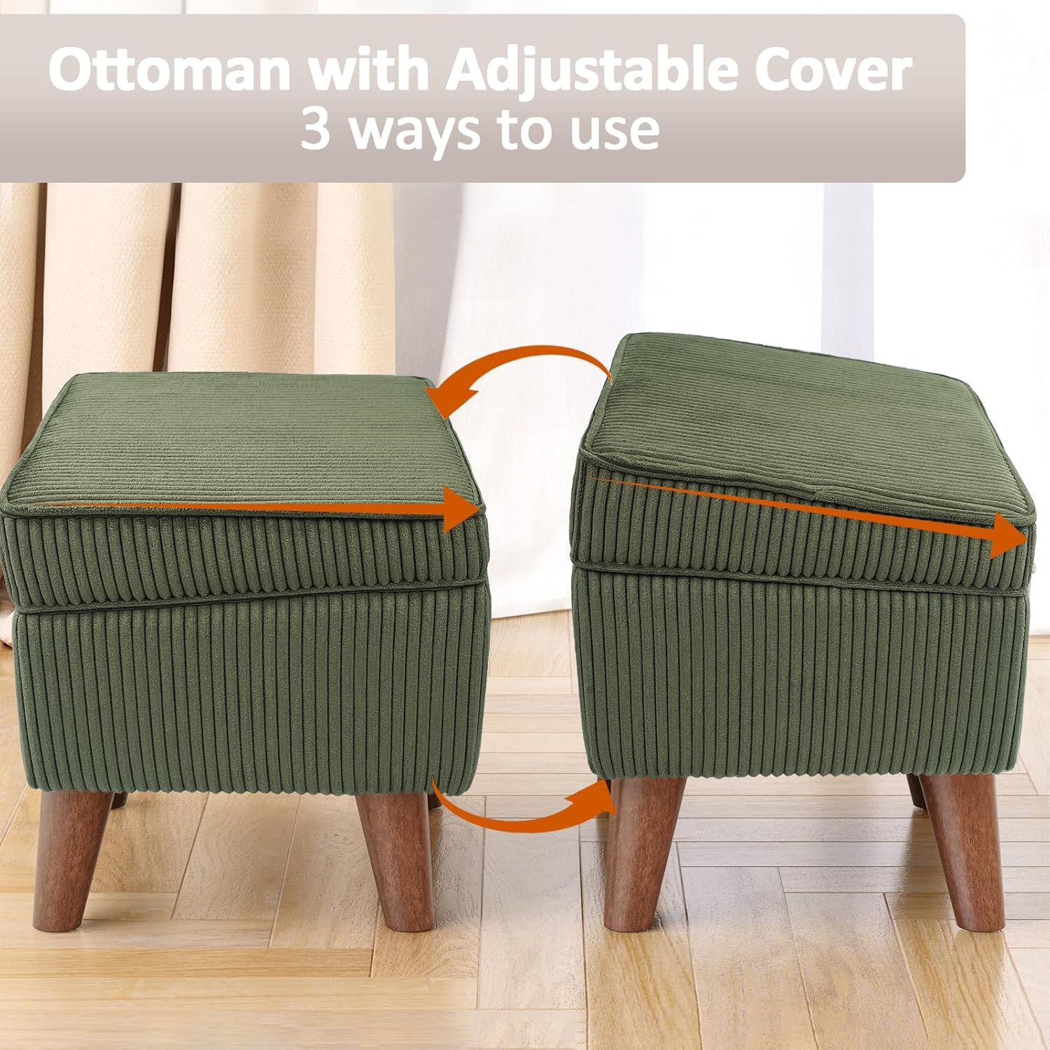 Storage Ottoman with Adjustable Lid, Soft Step Stool, Footrest and Seat, Ottoman Foot Rest for Living Room, Bedroom, Dorm, Green