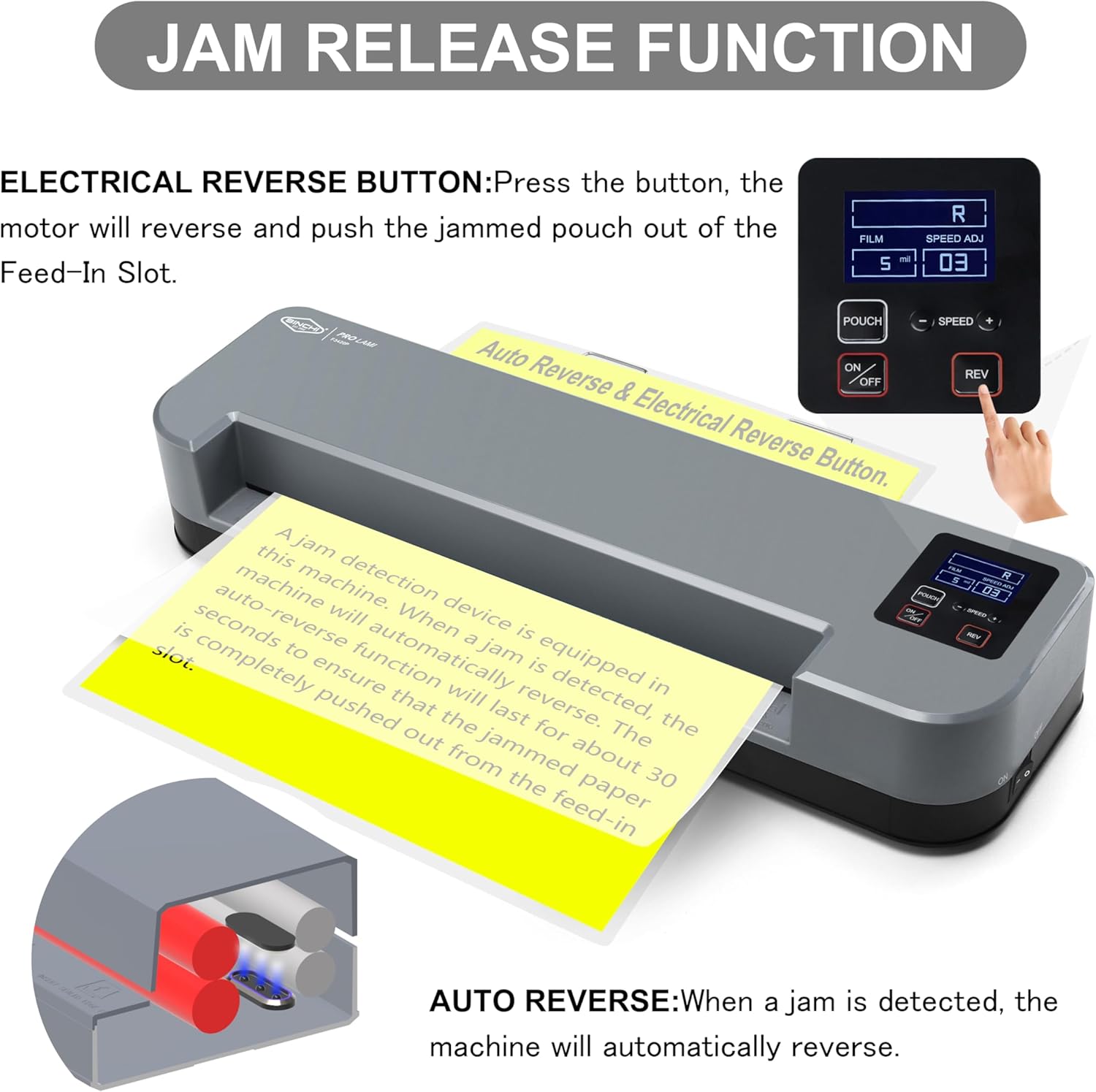 - 【Optimize Lamination Quality】Fine-tune lamination speed with micro-adjustment controls to achieve smooth, professional results. Increase speed to reduce waviness; decrease speed to minimize bubbles and enhance color depth.