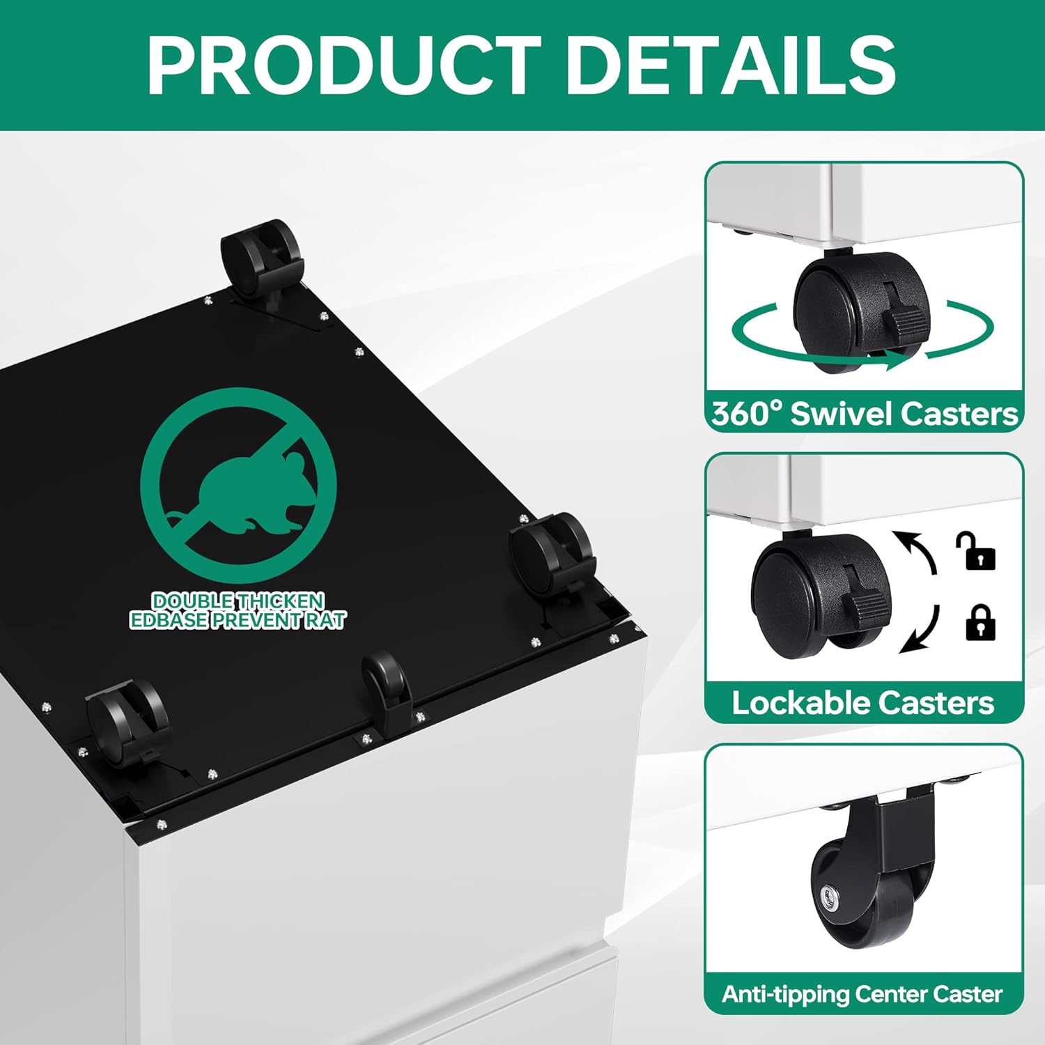 - 〖Detail Design〗All drawers interlocking mechanism design,only one drawer can be opened at a time, it will prevent tipping;High-quality ball slides make it easier and quieter to use, lockable wheels + 1 universal wheel to prevent tipping.