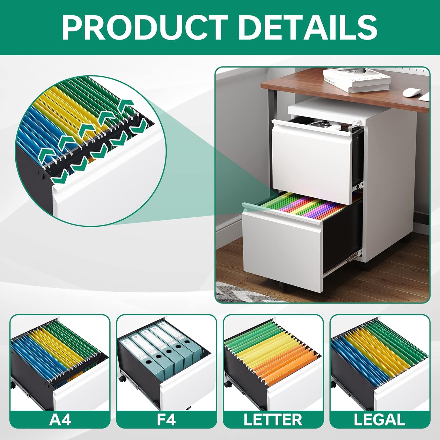 - 〖Document Storage Security〗One key to lock all drawers,each drawer can hang A4/F4/Letter/Legal and other file types;Each drawer can hang 150-300 files,drawer dimensions: 12.1"WX16.3"DX9.8"H.
