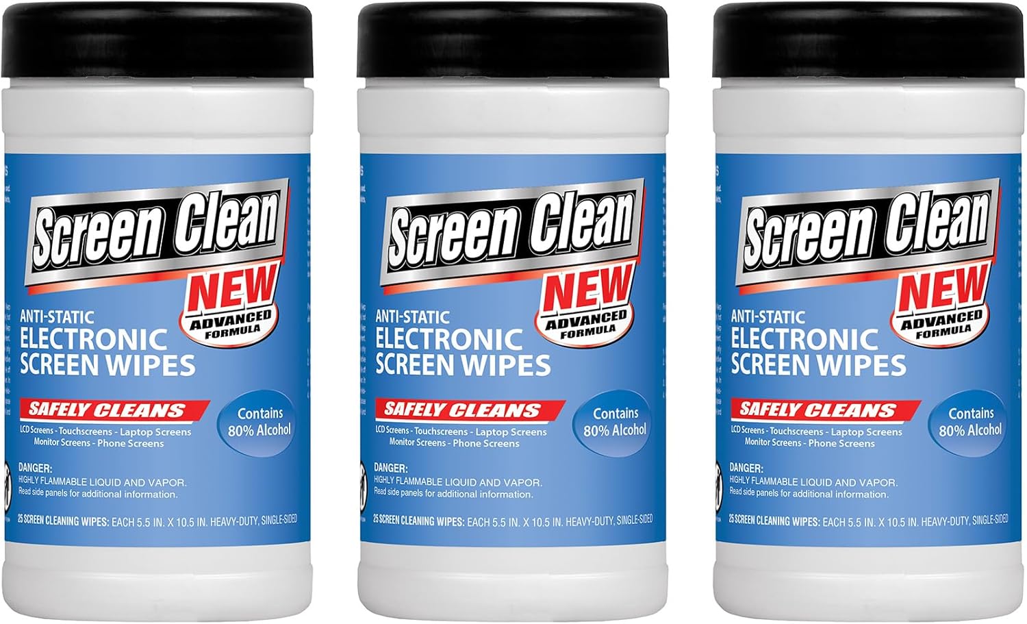 Zenex Screen Clean Anti-Static Electronic Screen Wipes - Single Sided Non-Abrasive Towels | For TV, Phones, Monitors | Quick Dry & Streak-Free | Prevents Static Build-up (3 Pack | 75 Sheets Total)