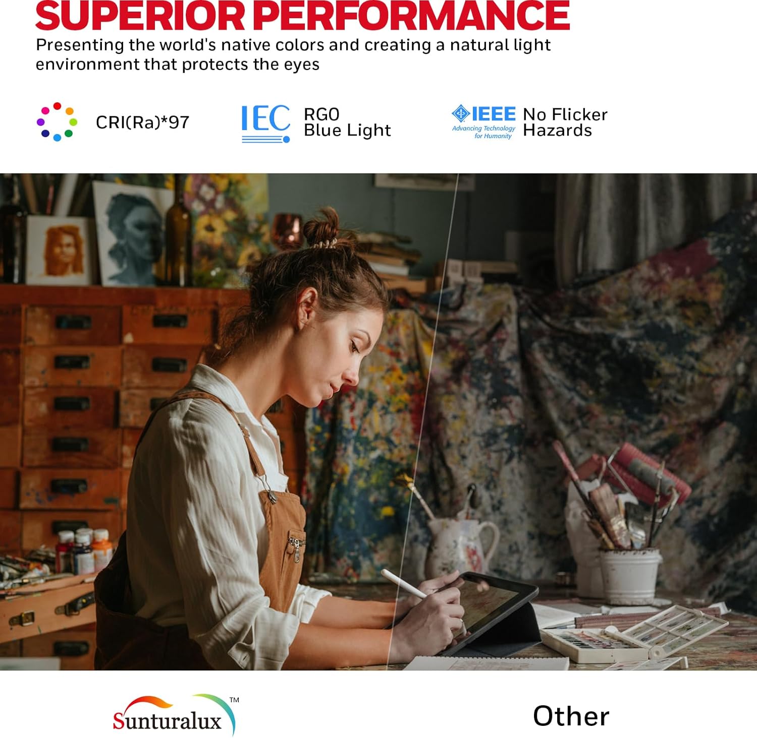 - Comfortable Natural Light: Honeywell HWT-05B02 desk lamp with clamp features a Sunturalux chip and 108 full-spectrum LED beads, offering a color rendering index (CRI(Ra)) ā„97. This design enables the LED desk lamp to mimic natural light, ensuring both comfortable illumination and accurate color reproduction.Enjoy the sunlight at home.