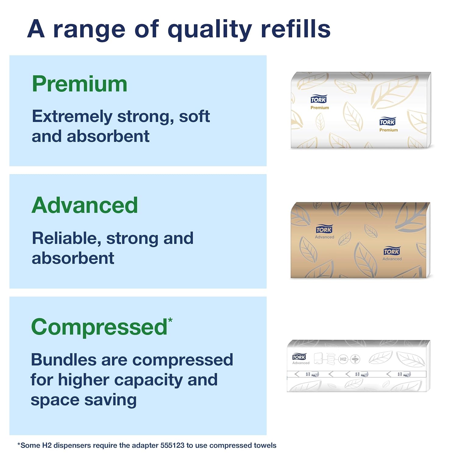 - Design: Elevation. W 11.9in. H 17.5in. D 4in. Material: Plastic. Color: Black. Suitable for H2 refills from Tork.