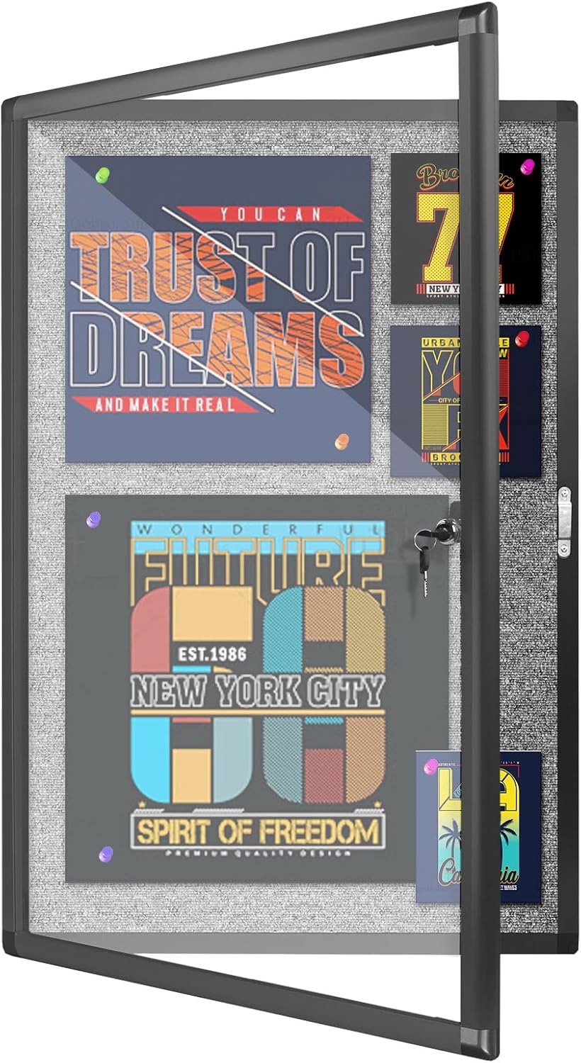 - Effortless Installation: With its functional design and comprehensive mounting tools, setting up our enclosed bulletin board is a breeze. Total size is 36" x 24" (frame included); Lockable surface size: 34" x 22", inner felt bulletin board thickness up to 0.4 inch.