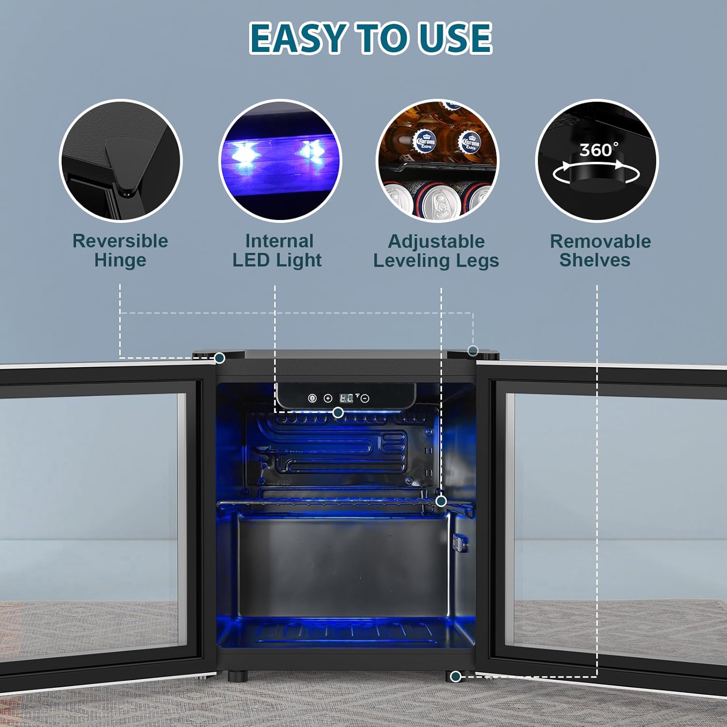 - Freestanding Wine Cooler: Provide easy access to wine and beverages without taking up much space. A stylish addition in your man cave, basement, game room, home bar garage, or any other space where you like to relax and enjoy a cold drink.