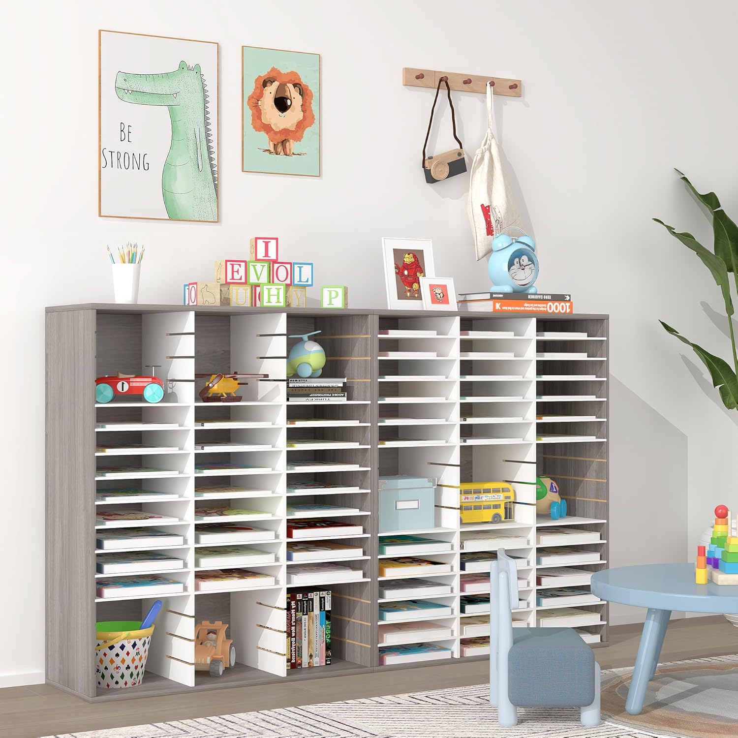 - 48-Compartment Mail Sorter Organizer: Organize 500+ sheets per slot in this industrial-grade classroom mailbox. With 48 compartments (12 x 9 x 2.1 inch eash slots), store comics, magazines, and travel brochures effortlessly. EPA-certified particleboard ensures long-term durability for office/classroom use.