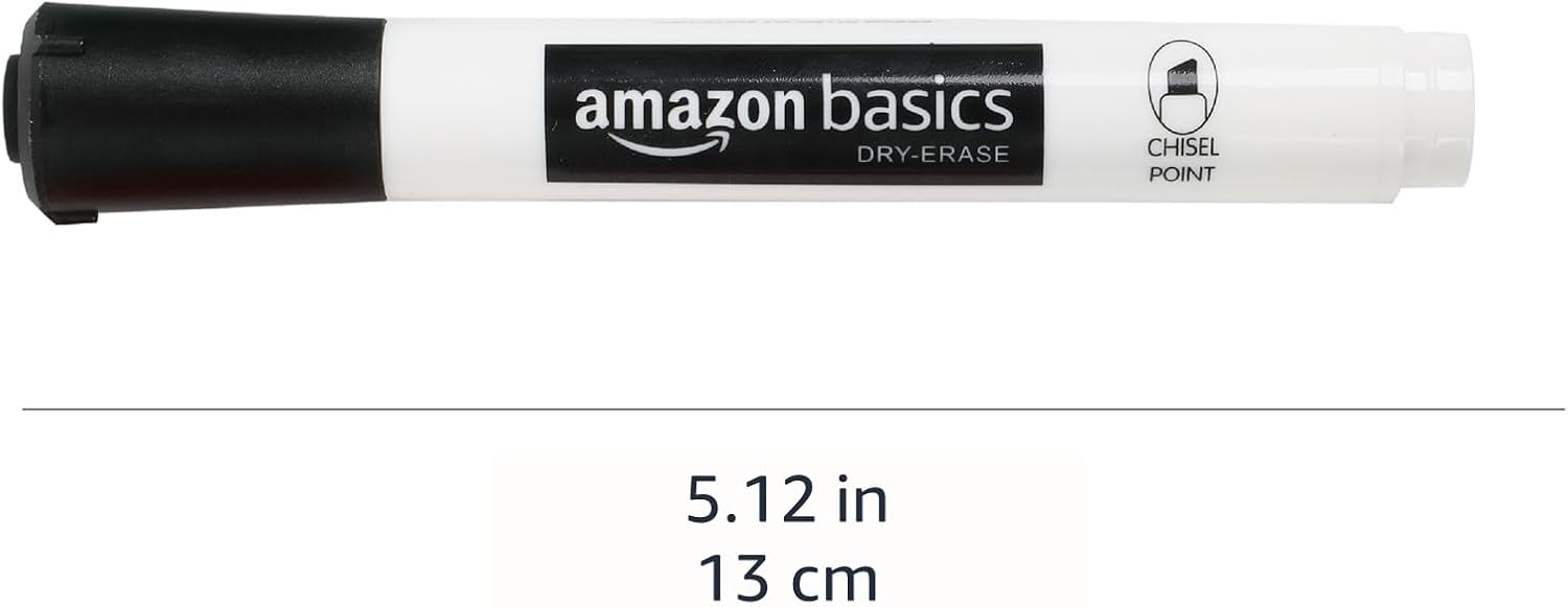 Amazon Basics Low-Odor Chisel Tip Dry Erase Whiteboard Marker, Pack of 4, Black, Red, Green, Blue