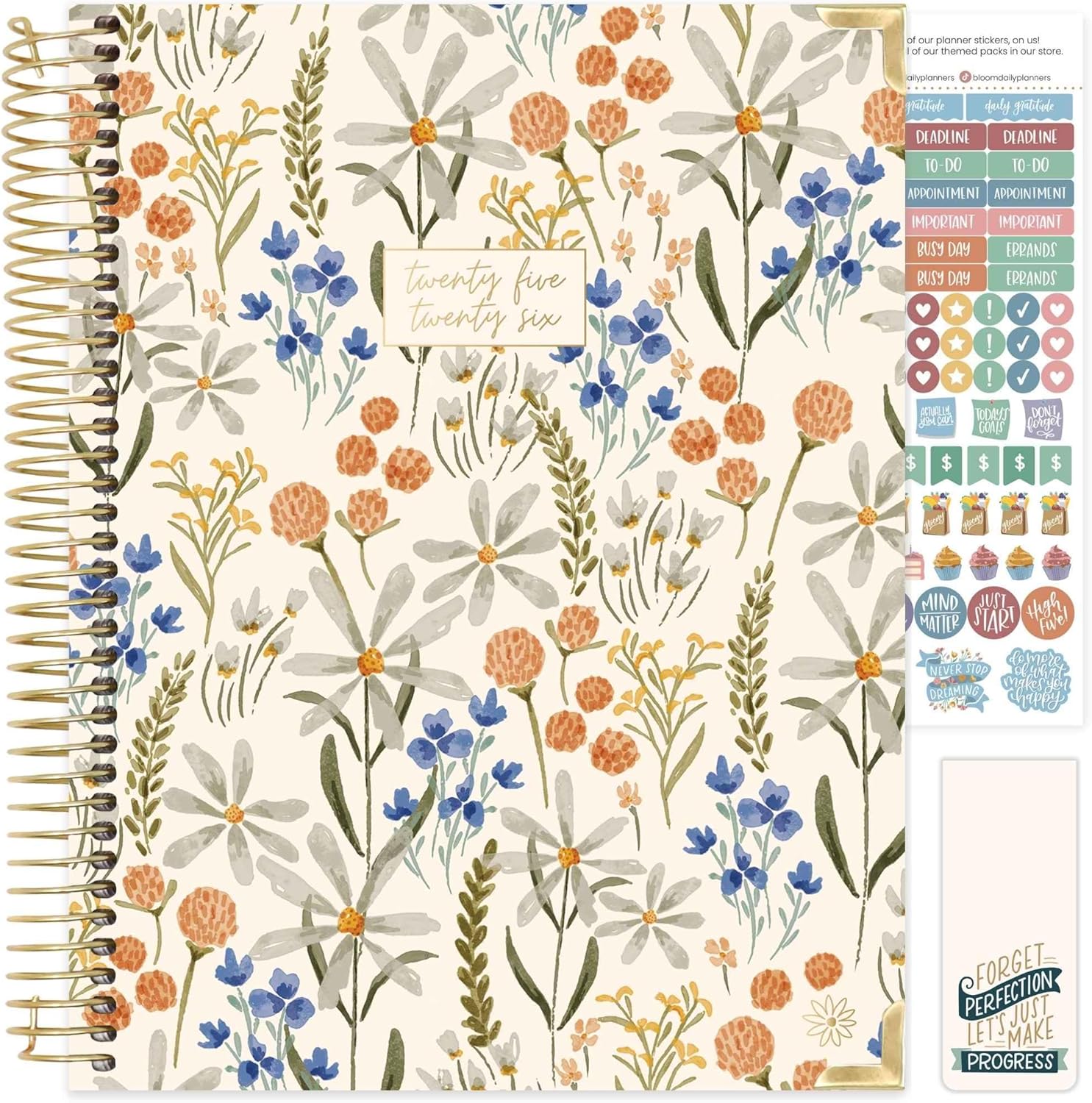bloom daily planners HARDCOVER 2025-2026 (8.5" x 11") Academic Year Day Planner (July 2025 - July 2026) - Task Goal Organizer - Monthly & Weekly Inspirational Agenda Book - Whimsical Wildflowers