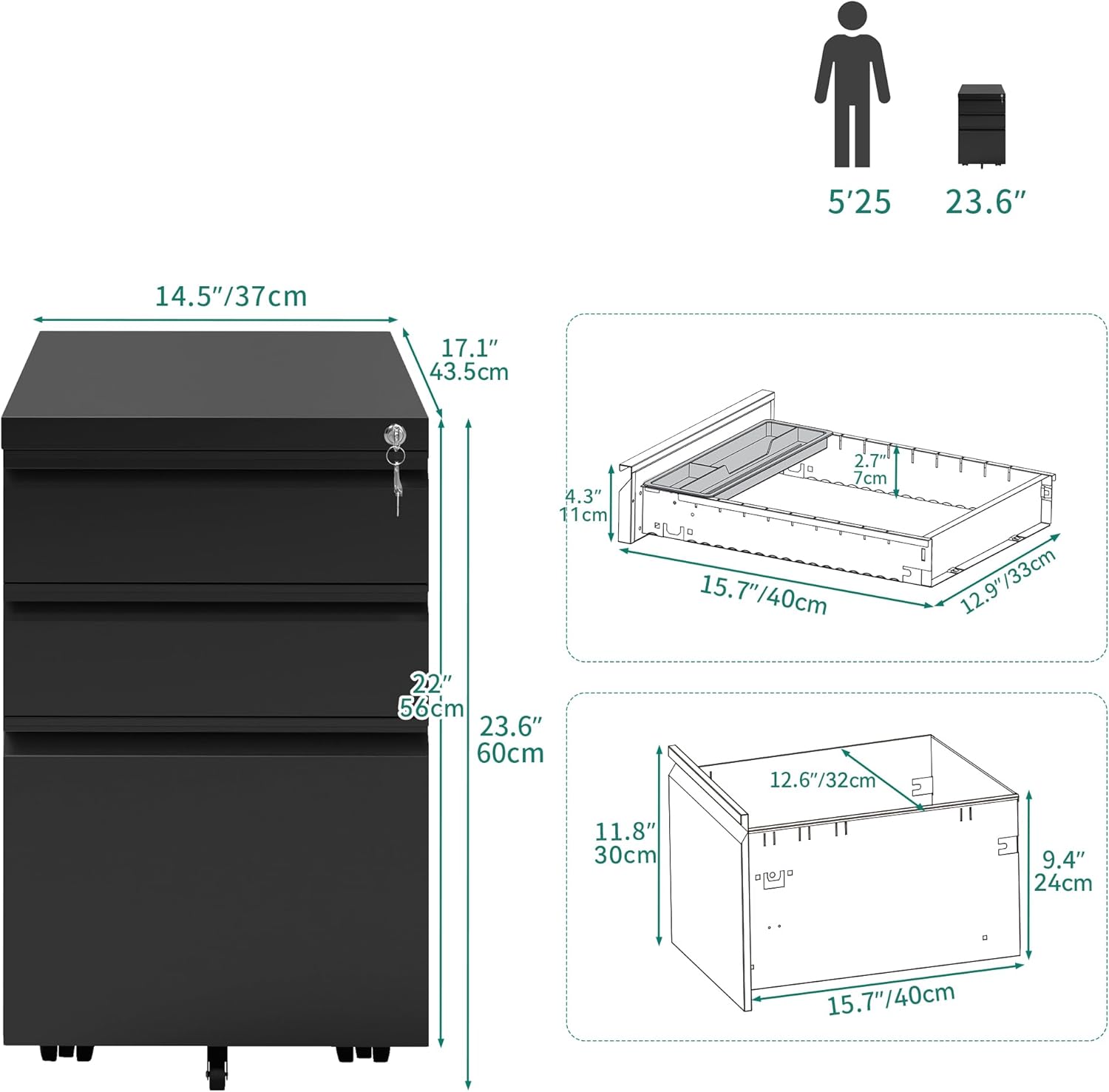 - 【Durable & Sturdy】The entire filing cabinet, including the inner lining of all drawers, is built using robust, heavy-duty steel with good finishing for long-lasting durability; Sturdy enough to place a printer on it without any deformation.