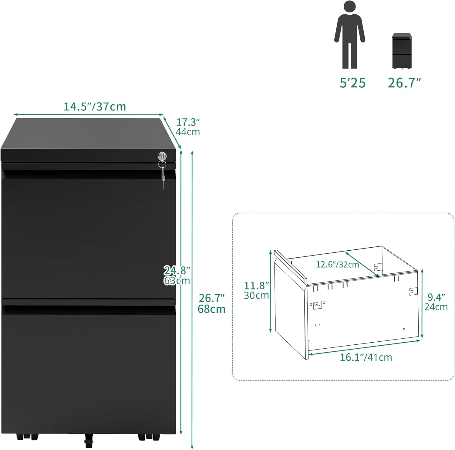 - A Great Helper for Office Workers: The whole file cabinet offers big storage space but occupies small ground surface; Can be a good solution to clean your office and organize your files; Equipped with two keys to take care of your privacy and safe documents.