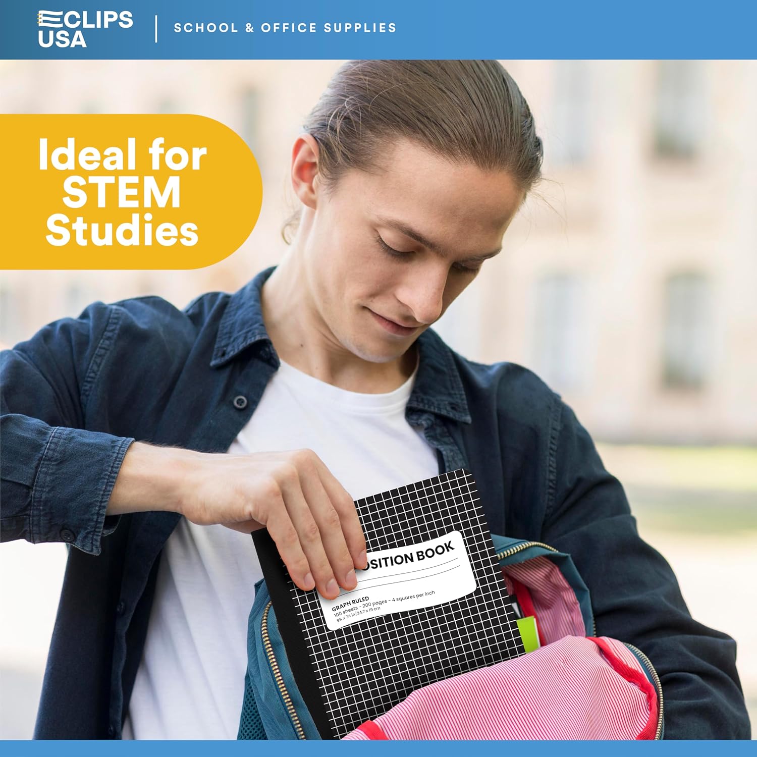 - DIMENSIONS 9.75″ x 7.50″ - Standard weight composition notebooks quad ruled. Inside covers printed with class schedule and math conversion tables.