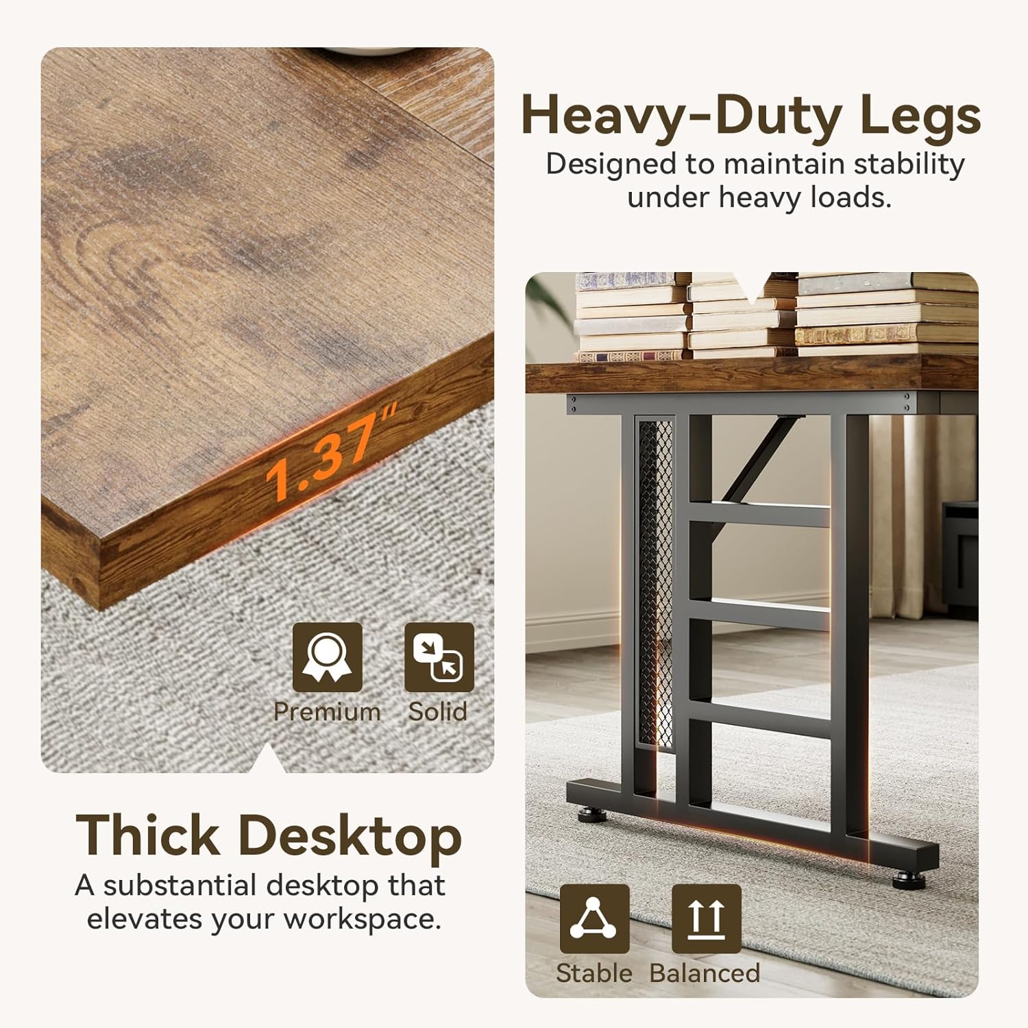 - ăHeavy-Duty, Sturdy Desk Frame for DurabilityăBuilt with a 1.37-inch thick engineered wood surface, this desk offers exceptional strength. The reinforced steel frame supports multiple monitors, printers, or heavy equipment. Adjustable leg pads keep your desk steady on uneven floors, ideal for home or writing desks.