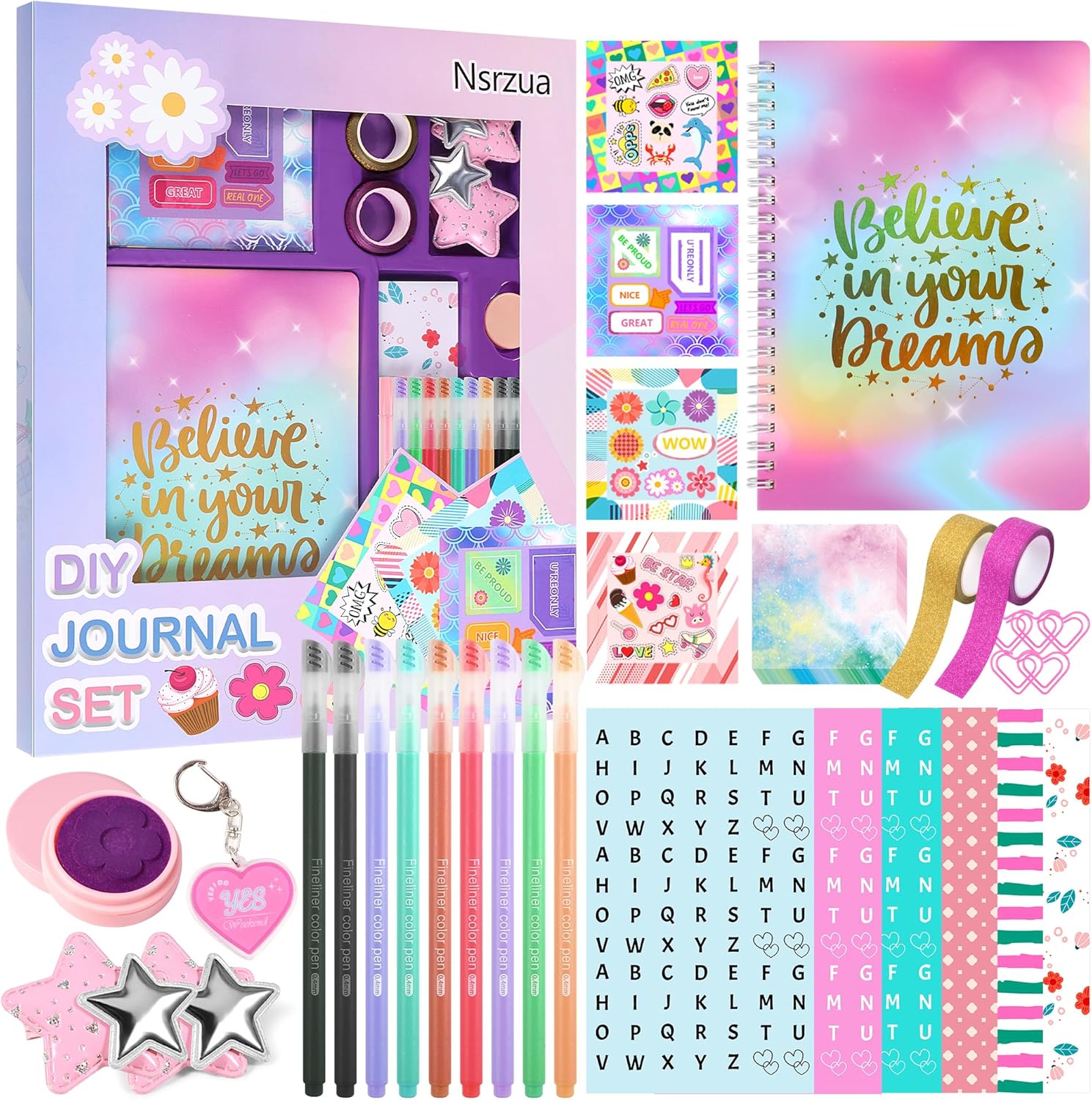 - Creative Arts & Crafts Kit: Includes a variety of fun and cute art supplies, such as colorful pens, stickers, and stencils. Itβs perfect for girls who enjoy crafts, journaling, and scrapbooking