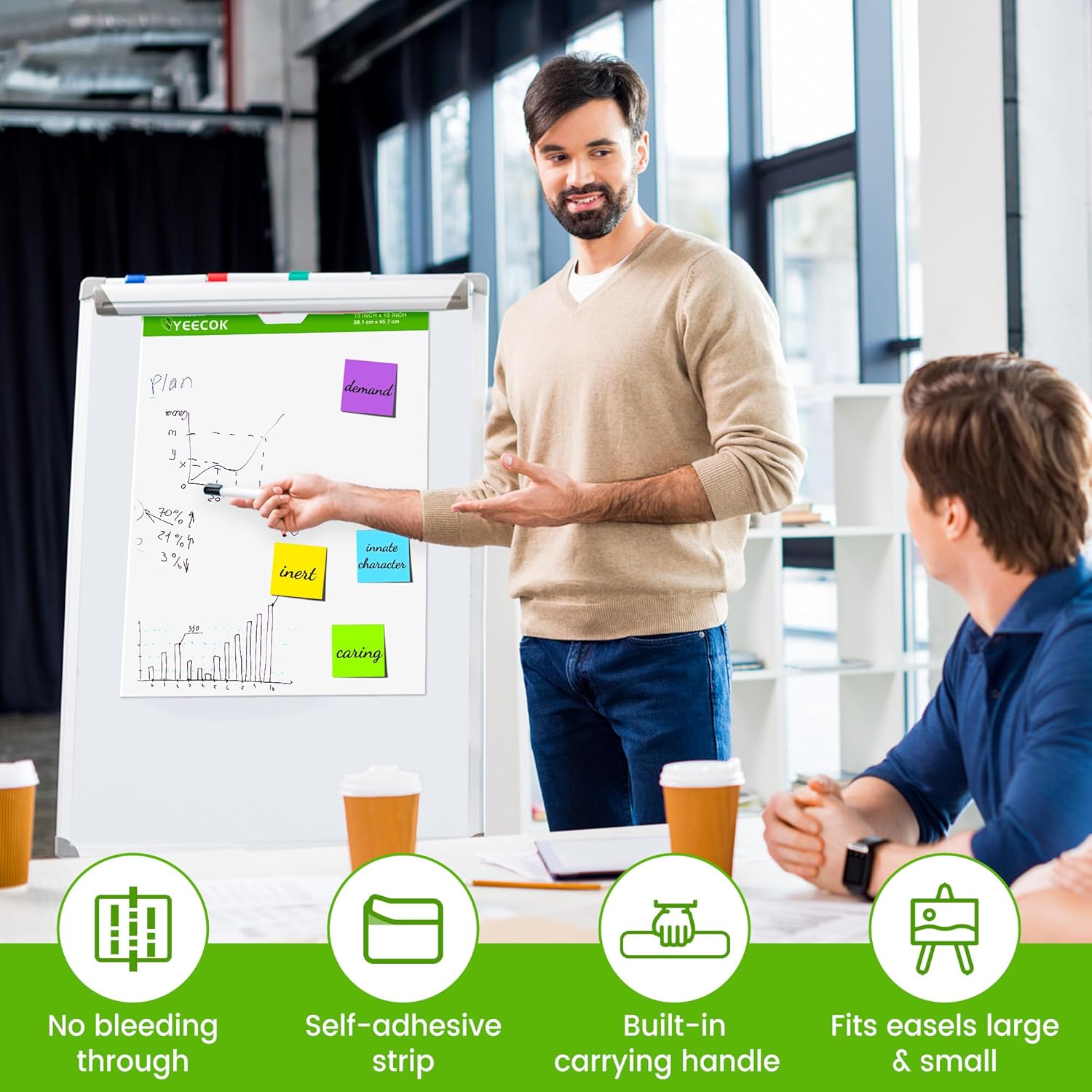 - 【Ink Bleed-Through Resistant】Large flip chart paper that resists bleed-through from markers or pens to keep information on the page, not on what's under the page.