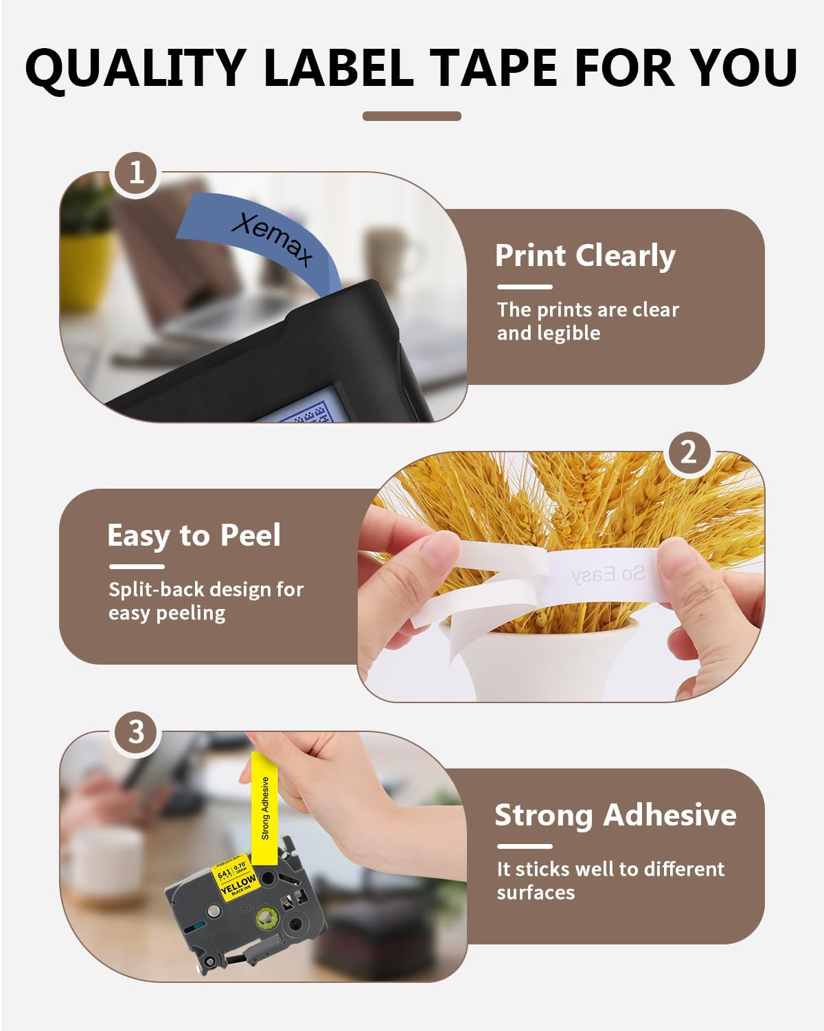 - 18mm 3/4in Tze Color Label Tape Compatible with Brother P touch Label Makers: PT-D600, PT-D610BT, PT-D600VP, PT-P710BT, PT-P750WVP, PT-P700, PT-2730VP, PT-H500LI, PT-2730, PT-2430PC, PT-2300, PT-E500, PT-1400, PT-1500, PT-1500PC, PT-1600, PT-2110, PT-2200, PT-2210, PT-2300, PT-2310, PT-2400 and more
