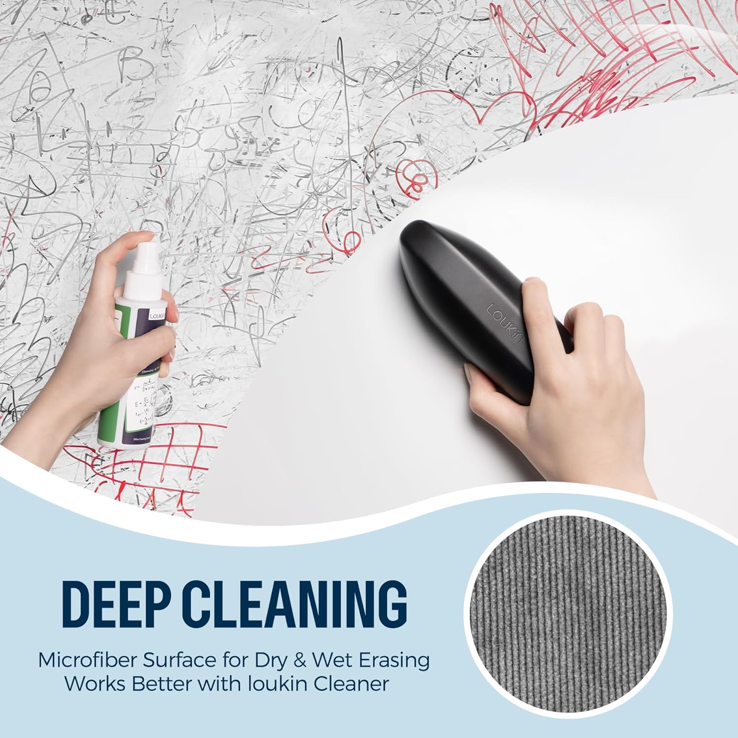 - Daily & Deep Cleaning: The reversible eraser pad offers two different surfaces. The electrostatic fabric side delivers superior friction, perfect for daily dry erasing. The microfiber side works for both dry and wet erasing, and pairs perfectly with Loukin cleaner for deep cleaning