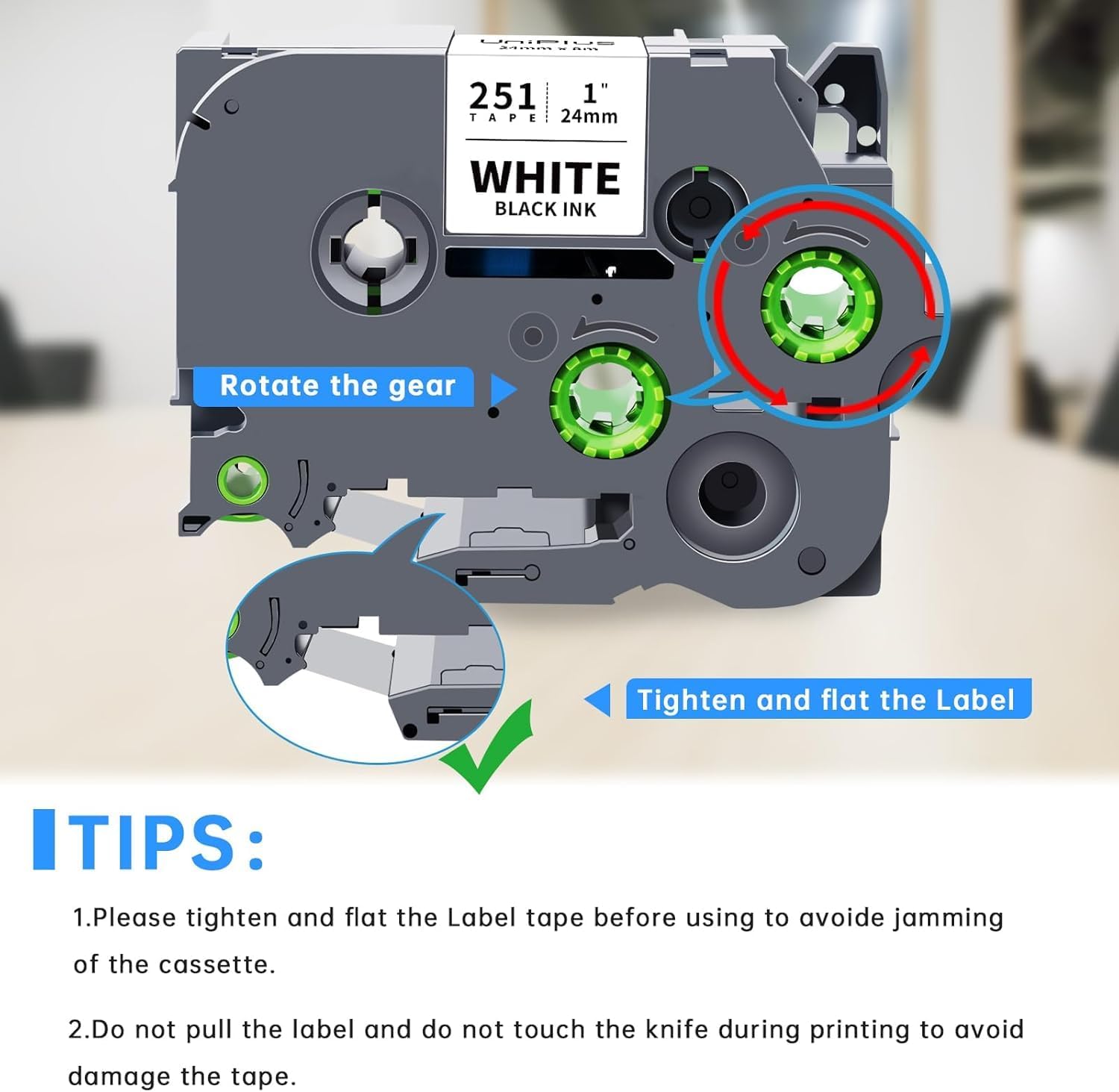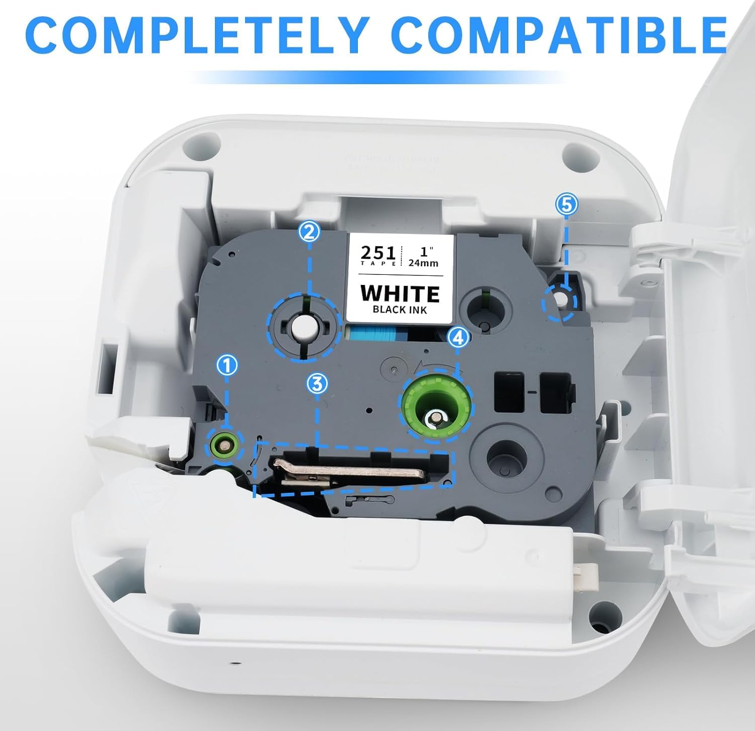 6-Pack Compatible for Brother Tze-251 Tze-151 Tze-451 Tze-551 Tze-651 Tze-751 24mm 0.94" TZ Laminated Label Tape PTouch 1 inch Tape Work for PTP700 PTD600 PTD610BT PTP710BT PTP750W PTP910BT