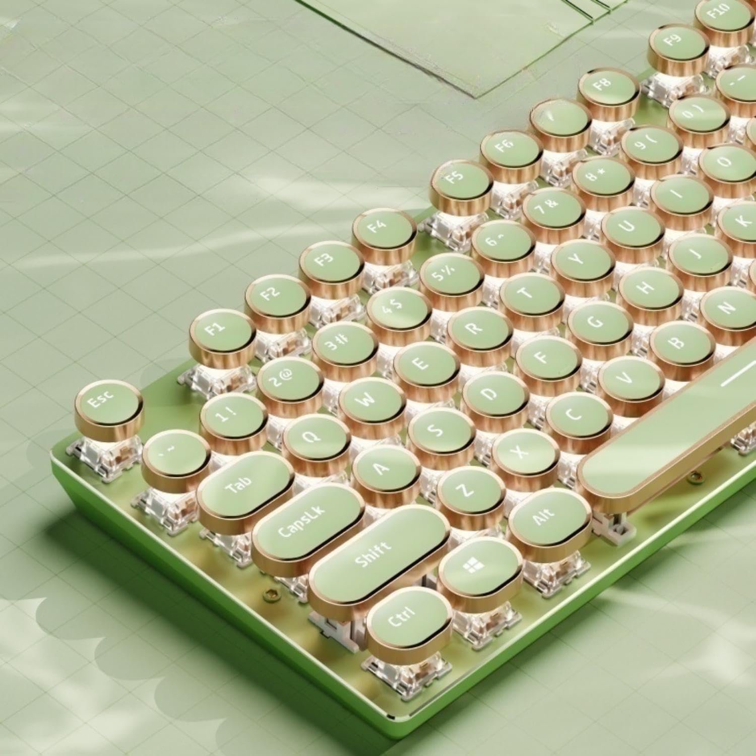 - 【Metal Panel and Electroplated Punk Keycaps】:The typewriter gaming keyboard panel is made of top-grade aluminium alloy, with a metallic matte texture, sturdy and robust enough to protect it from scratch. The floating keycaps are carefully crafted using metal plating technology, with a unique monochromatic light that instantly makes your keyboard look stunning, and enhances the feeling of the retro typewriter keyboard.
